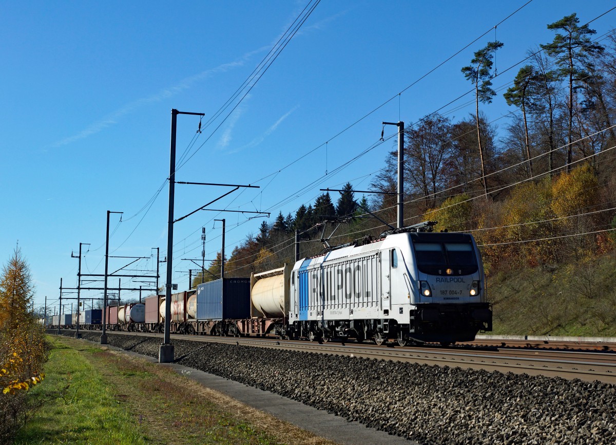 BR 185: Regenaufnahmen eines mit zwei blauen Lokomotiven der BR 185 bespannten Güterzuges bei der Durchfahrt Burgdorf am 29. Juli 2015. An der Spitze des Zuges ist die 185 527-9 eingereiht.