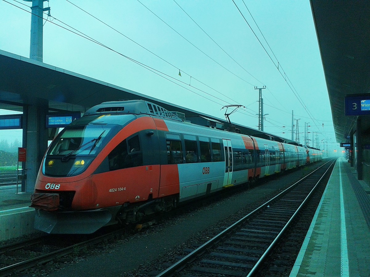 4024 123-4 als R 4858 (Spittal-Millstättersee - Lienz) am 5.1.2015 in Spittal-Millstättersee. Auf dem linken Gleis wartet ein weiterer 4024 auf die Abfahrt nach Friesach. Hans-Peter Kurz