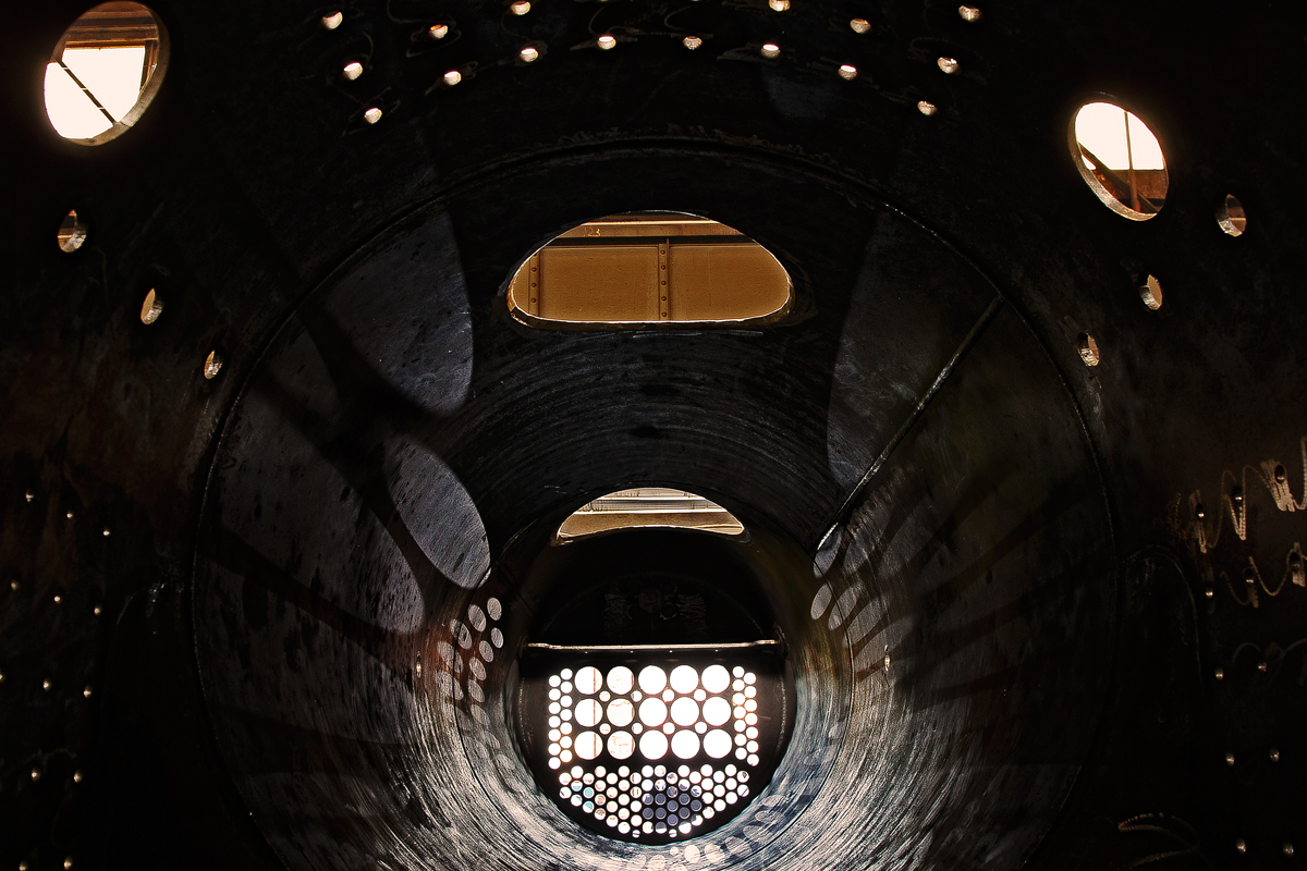 Blick in den Röhrenkessel der Waldviertelbahn Dampflokomotive 399.04 im Dampflokwerk Meiningen am Tage der XXI.Meininger Dampfloktage / 5.9.2015