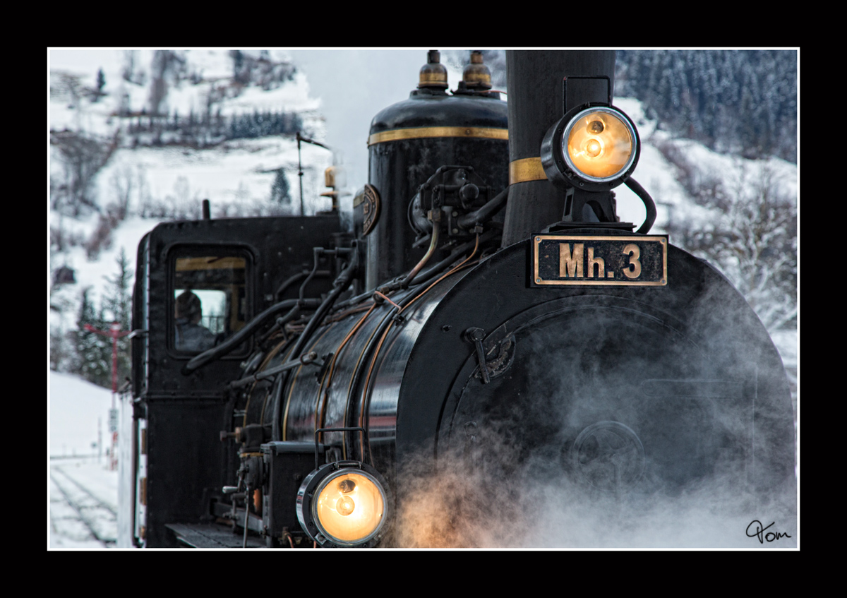 Winterwonderland II - Auf der Pinzgaubahn fährt die Dampflok MH3, mit einem Dampfsonderzug von Zell am See nach Krimml.