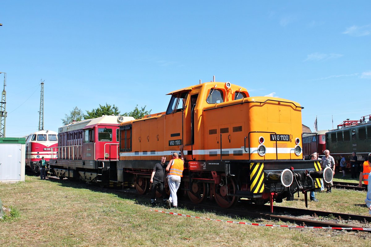 Am 14.06.2015 stand wärend dem Sommerfestes vom DB Museum in Koblenz Lützel die V60 1100 (346 100-1) von Bahnbestriebswerk Arnstadt historisch e.V. zusammen mit der 107 018-4 (V75 018) von Railsystems RP GmbH neben der dortigen Drehscheibe. Tobias Schmidt