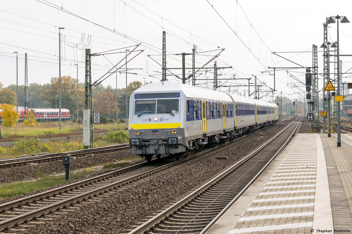 Eine Mitteldeutsche Regiobahn Reisezug Garnitur die ab dem 13.12.2015 auf dem RE6 (Leipzig Hbf-Chemnitz Hbf) zum Einsatz kommen soll in Wittenberge am 24.10.2015. Es ging in Richtung Ludwigslust weiter und geschoben hatte die 223 011-8. Stephan Kemnitz