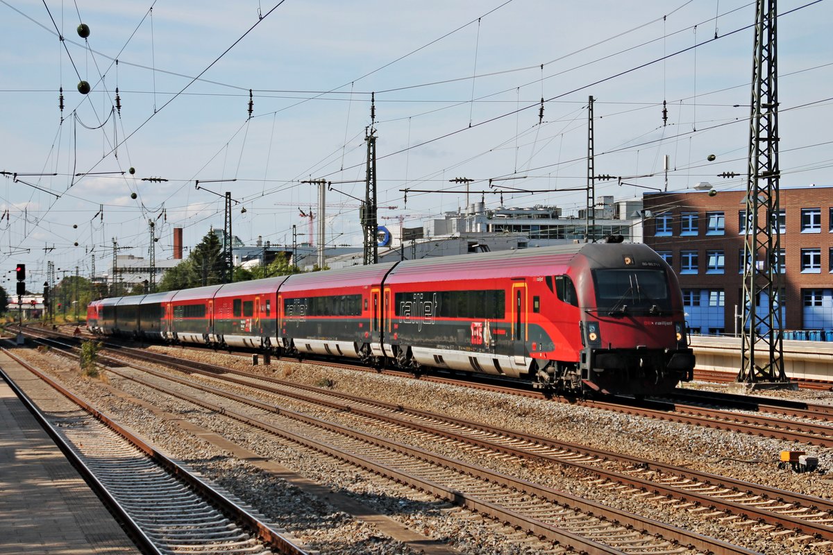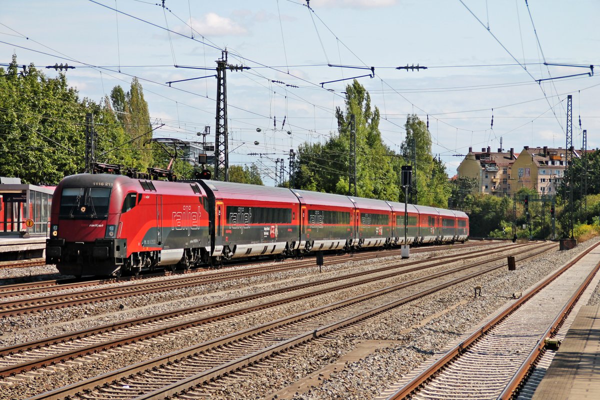 Am 25.08.2015 durchfuhr 1116 211 "Spirit of Munich" mit ihrem RailJet aus Richtung Ostbahnhof durch München Heimeranplatz gen Hauptbahnhof. Tobias Schmidt