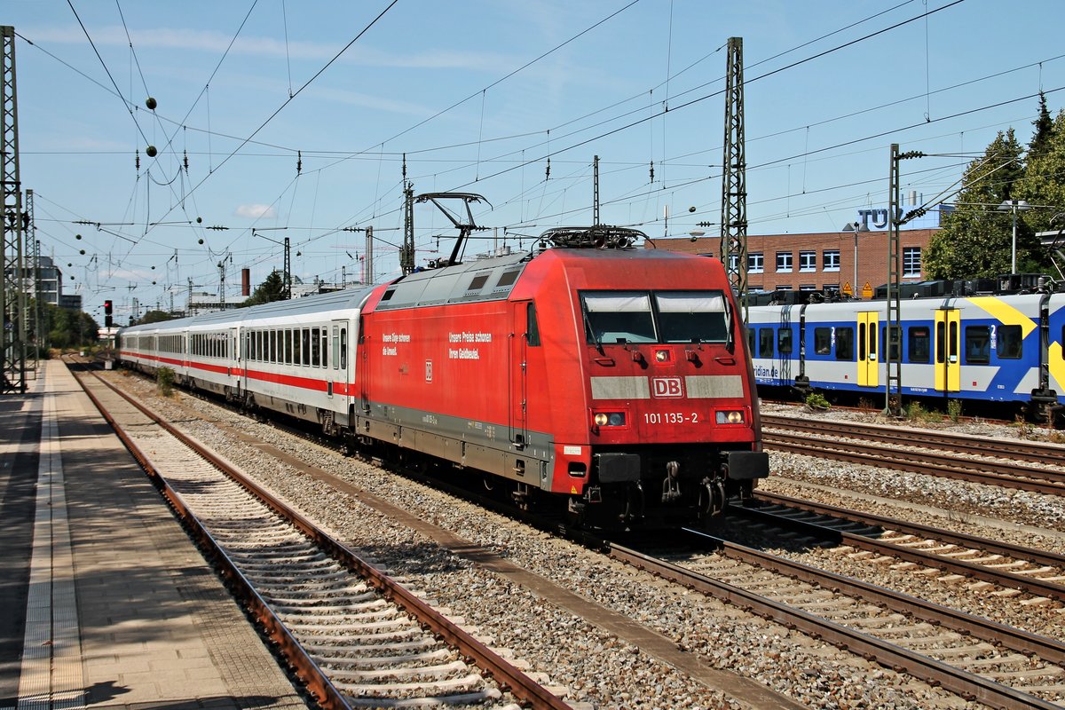 Durchfahrt am 25.08.2015 von 101 135-2 mit dem IC 2083 "Königsee" (Hamburg Altona - Berchtesgarden) in München Heimeranplatz in Richtung Ostbahnhof. Tobias Schmidt