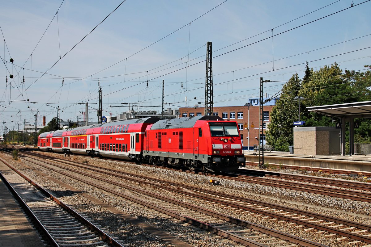 Nachschuss auf die Mühldorfer 245 009, als sie am 25.08.2015 ihren RE (Mühldorf - München Hbf) durch München Heimeranplatz gen Zielbahnhof schob. Tobias Schmidt