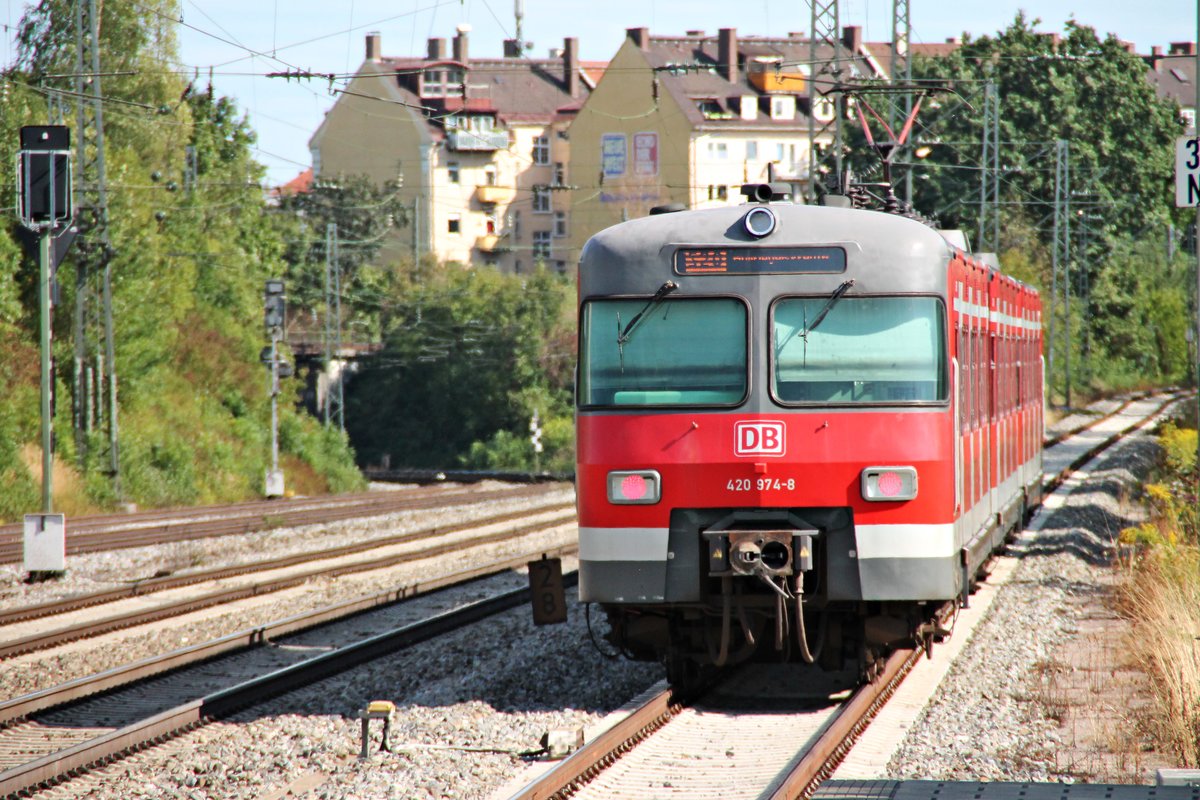 Nachschuss am 25.08.2015 auf 420 974-8, als dieser als S20 (Pasing - Höllriegelskreuth) aus dem Bahnhof von München Heimeranplatz fuhr. Tobias Schmidt