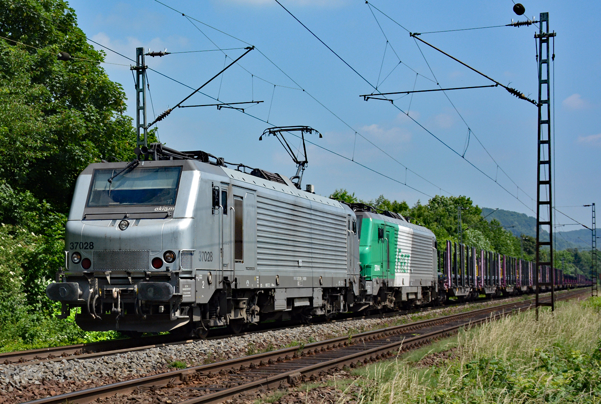Mit einem gemischten Güterzug fuhr am 25.08.2016 die Akiem/SNCF FRET BB 437052 durch den Haltepunkt von Staffelfelden in Richtung Norden. Tobias Schmidt