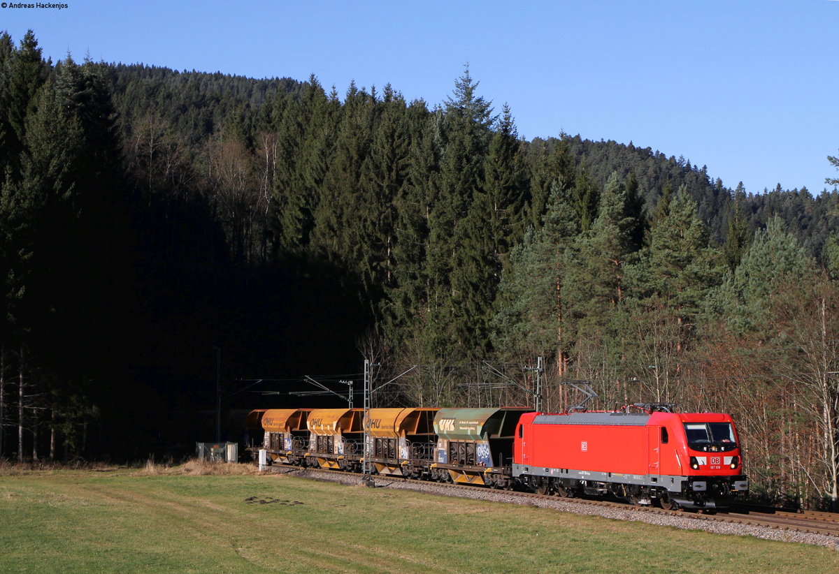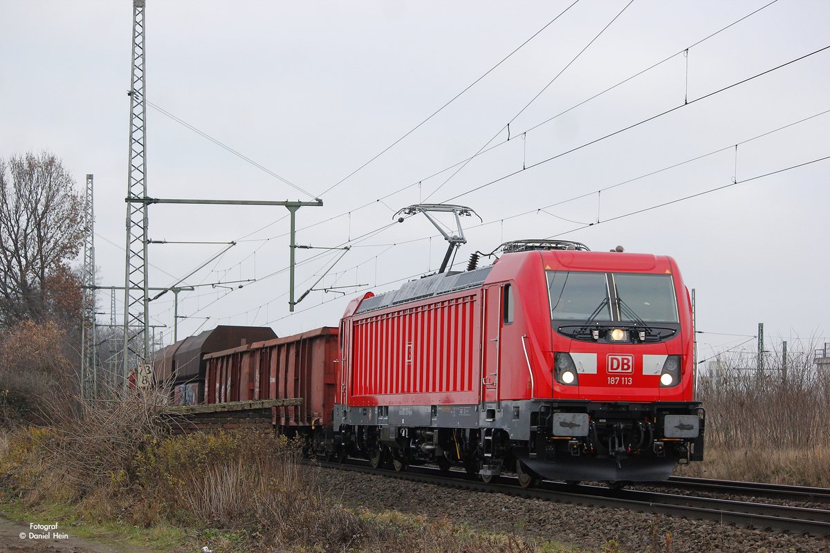 Am 21.12.2016 bespannte die Mannheimer 187 115 einen gemischten Güterzug (Mannheim Rbf - Chiasso), den sie vom Startbahnhof bis an die Schweizer Grenze nach Basel Bad Rbf brachte. Hier ist sie zusammen mit der Wagenlok 185 006-4 und dem gemischten Güterzug bei Müllheim (Baden) kurz vor ihrem Ziel. Tobias Schmidt