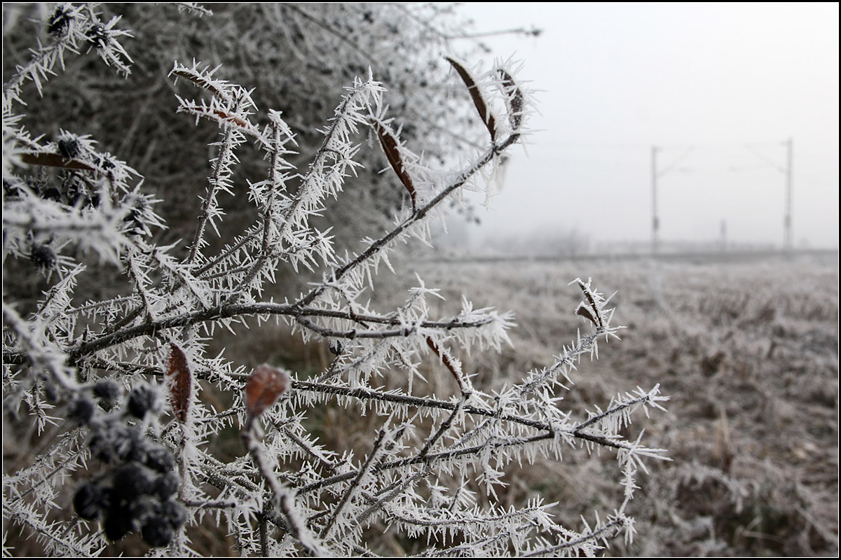 Interessant: die Stacheln werden nur durch das Raureif gebildet.