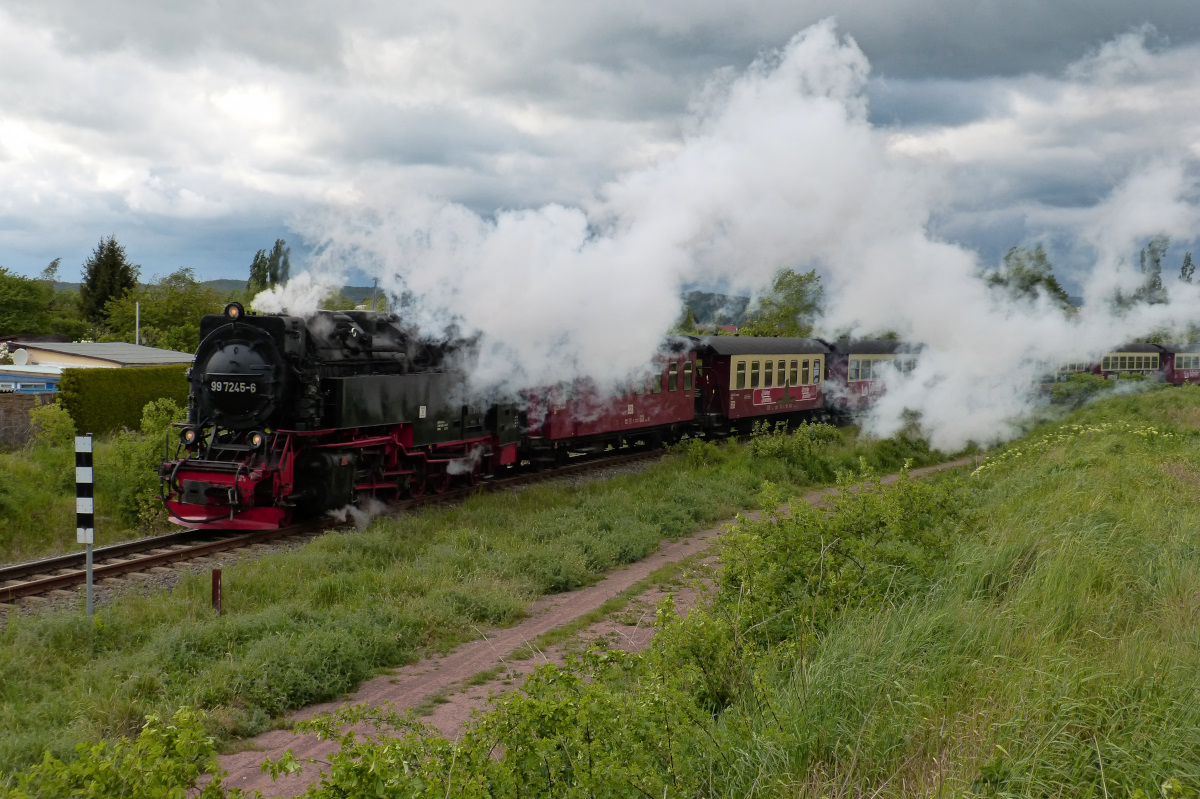 Wenn einem der in den letzten Tagen so aktive Westwind einen Strich durch die Rechnung macht und einem das Dampfbild ruiniert. Der Brockenzug im Stadtgebiet von Nordhausen zwischen dem Haltepunkt Altentor und Endstation Nordhausen-Nord 15.05.2016 Stephan John