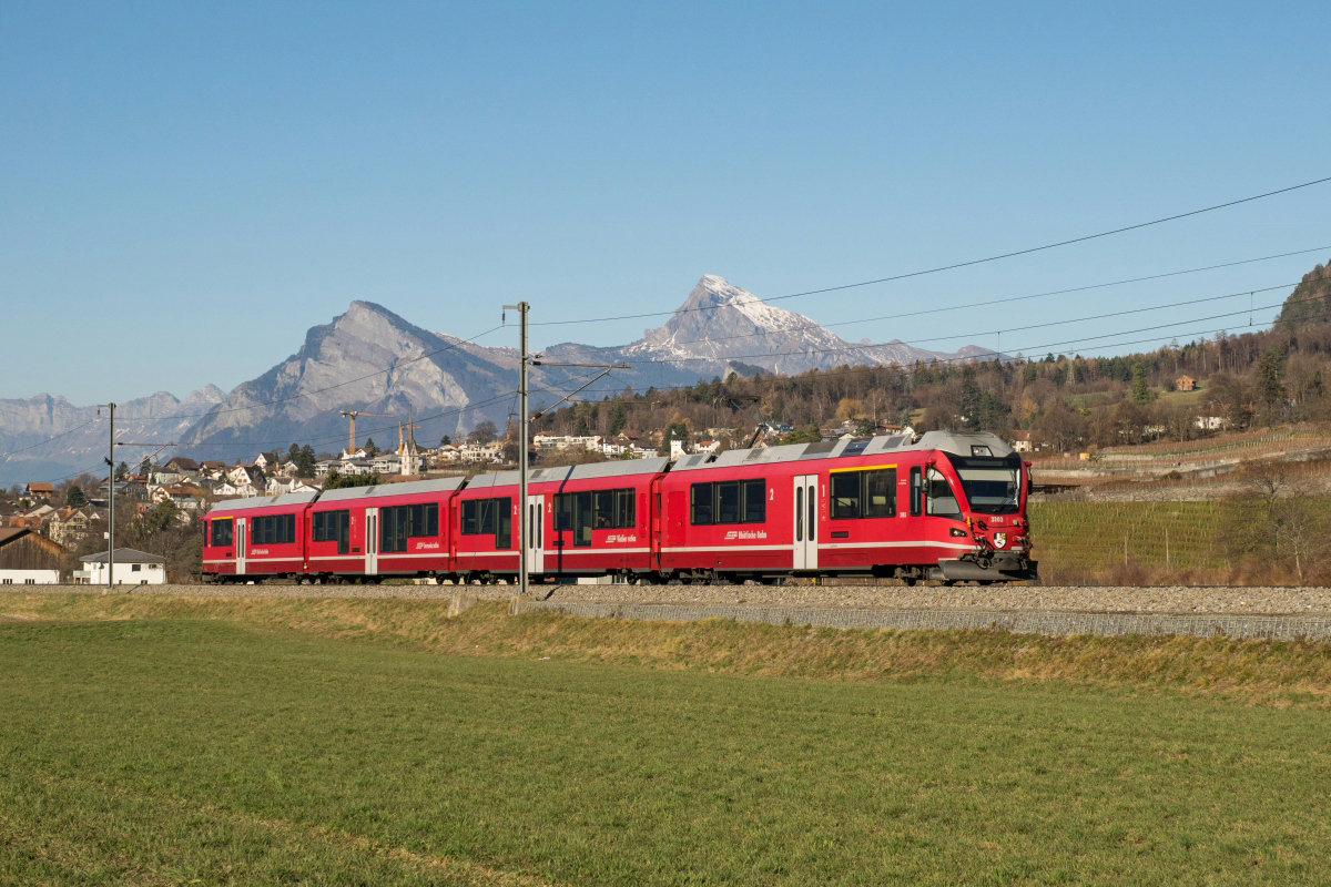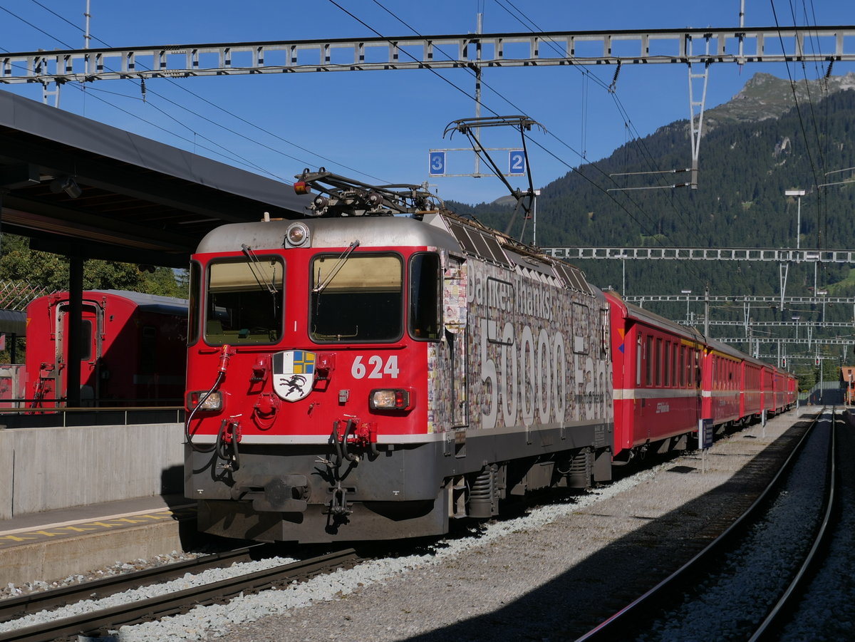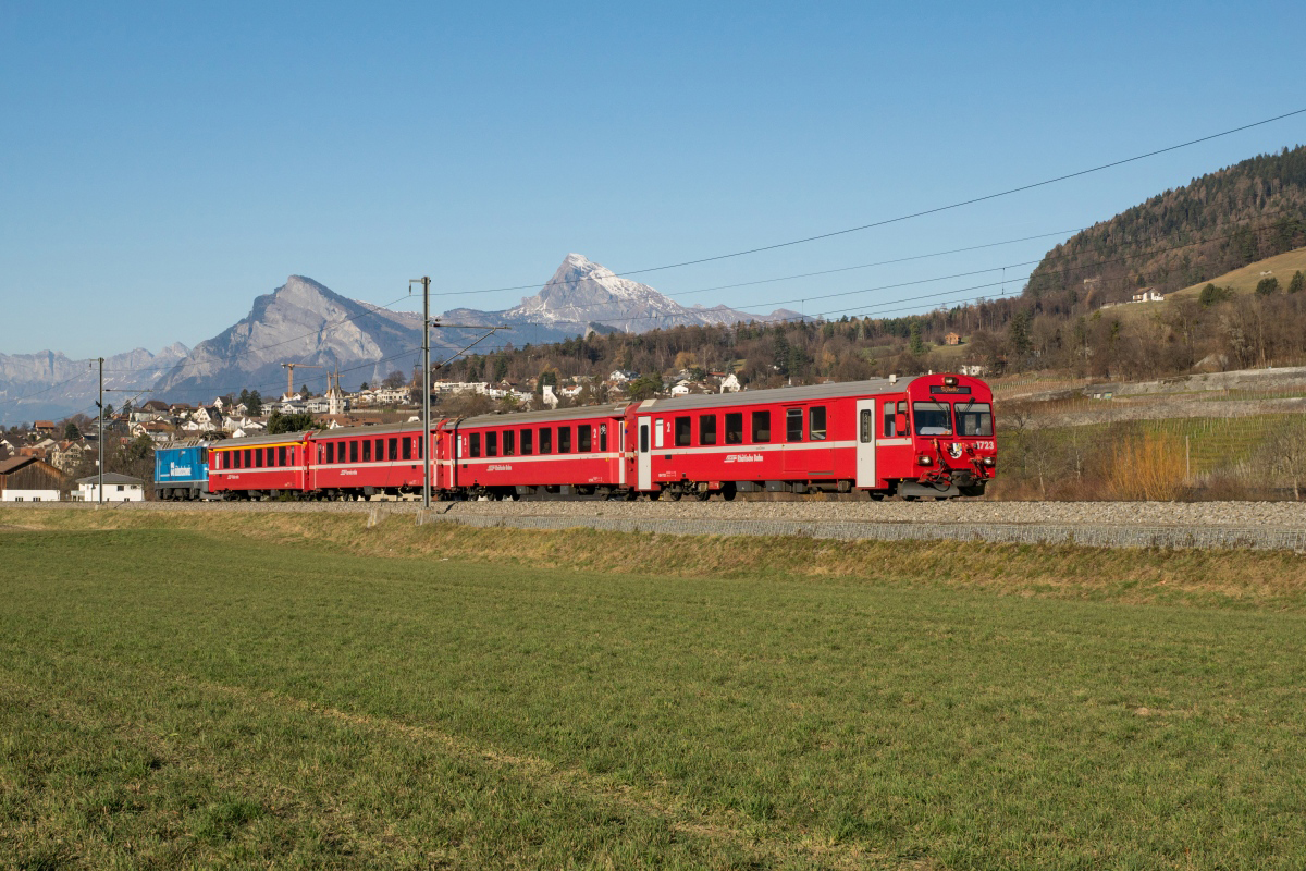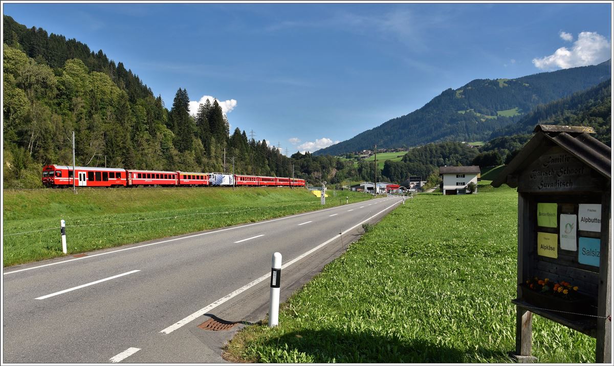 RE1048 von Davos Platz nach Landquart bei Jenaz. Steuerwagen 1755 führt den Zug, die Lok Ge 4/4 III 649 "Lavin" befindet sich in Zugsmitte. (02.09.2016) Herbert Graf