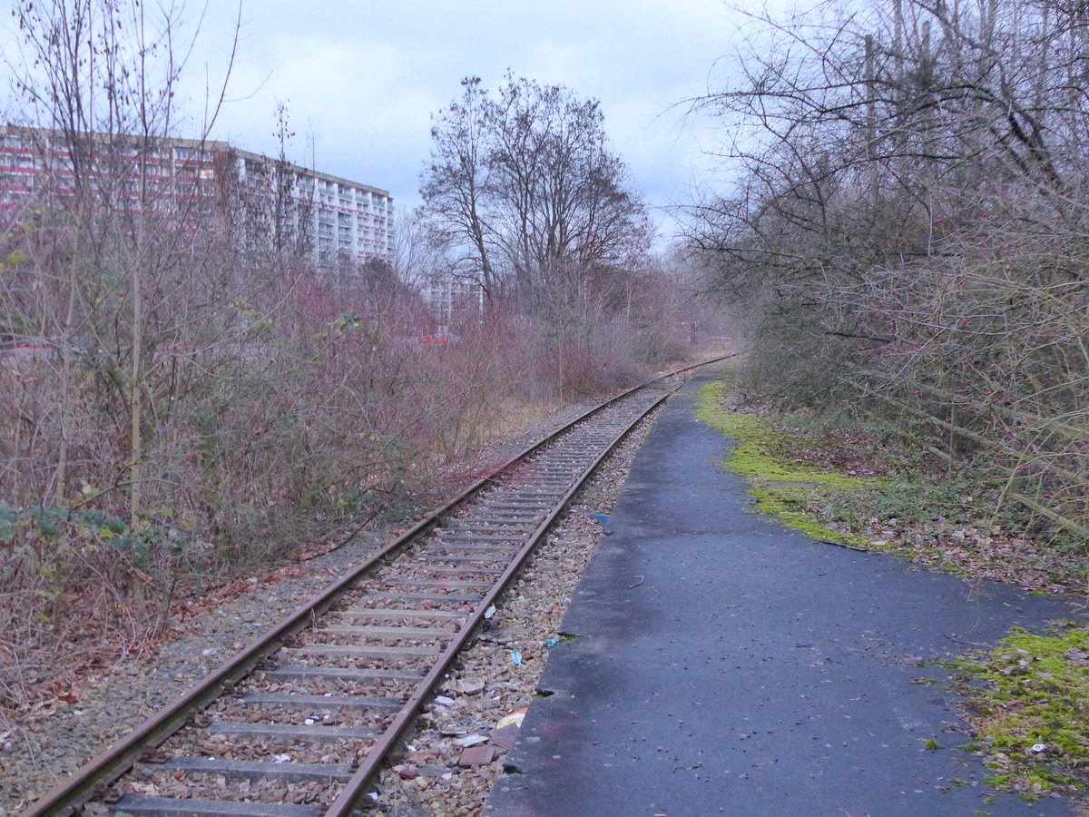 Das Verbindungsgleis zwischen Erfurt Ost und Erfurt Nord, am 02.01.2016 in Erfurt. Auf dem Gelände der Erfurter Gleisbau GmbH steht dr ehemalige britische Wachwagen 50 80 09- 40 051-7 P Bcmk. Dieser verkehrte bis 1991 im von der RTC betriebenen britischen Militärzug "The Berliner" zwischen Hannover und Berlin. Dieser Wagen verfügt über eine Küche und wurde als Wachwagen der Militärpolizei in den Berliner Zügen mitgeführt. http://www.british-berliner.org/ Frank Thomas