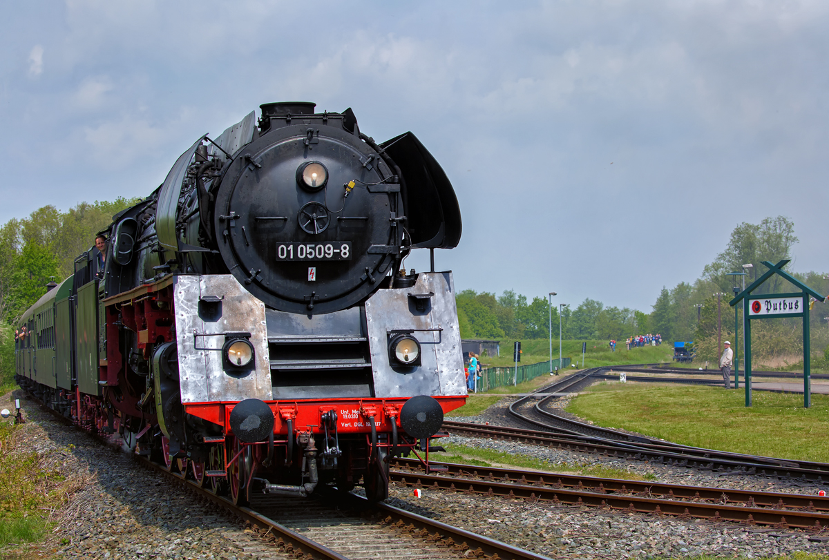 Dieser Sonderzug mit den Lok’s der BR 118 als Zuglok und der BR 01 als Schlusslok, fuhren nach kurzem Aufenthalt beim Putbuser Bahnhofsfest nach Bergen auf Rügen zum Wassernehmen zurück. - 21.05.2016 Gerd Wiese
