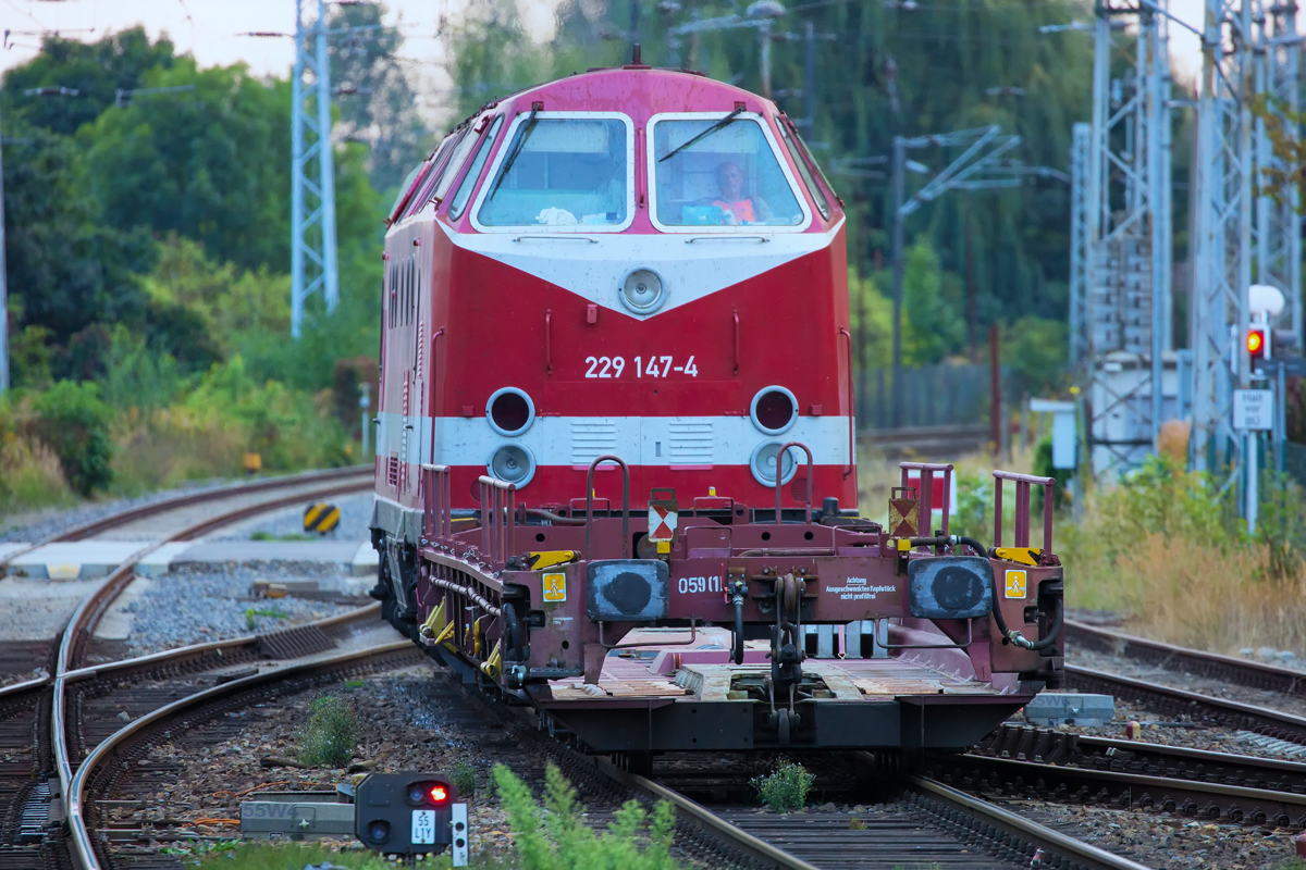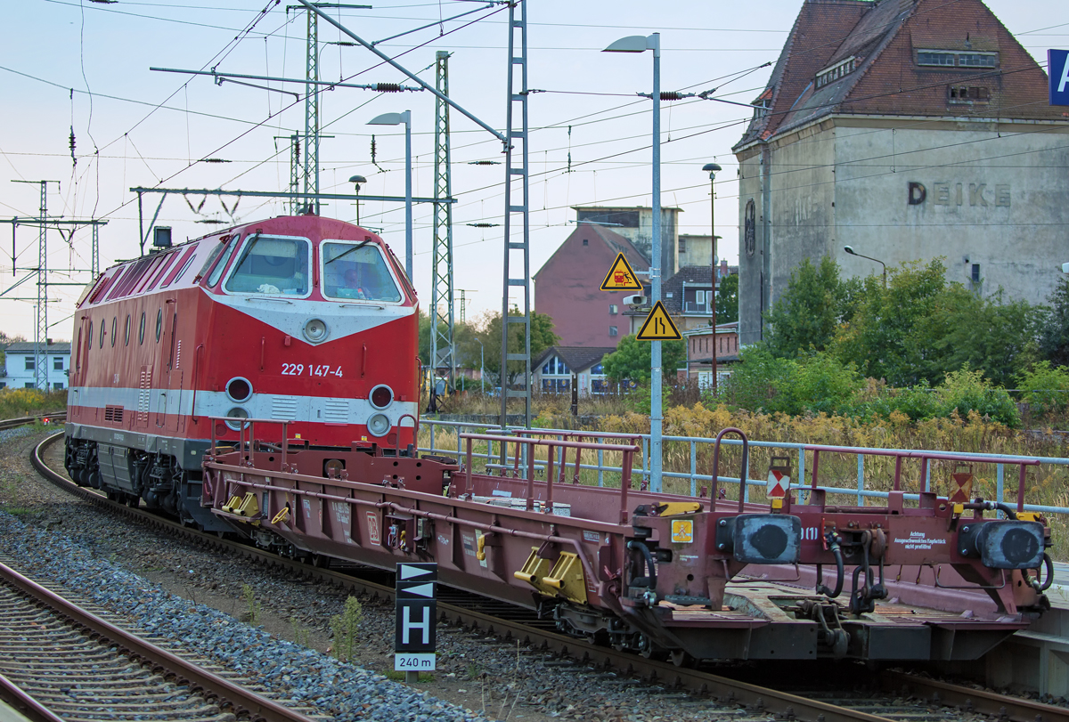Nach kurzem Halt in Pasewalk setzt die Lok der BR 229 mit einem Sa-Wagen die Fahrt in Richtung Berlin fort. 23.09.2016 - Vom Ende des Bahnsteigs 1 aufgenommen. Gerd Wiese