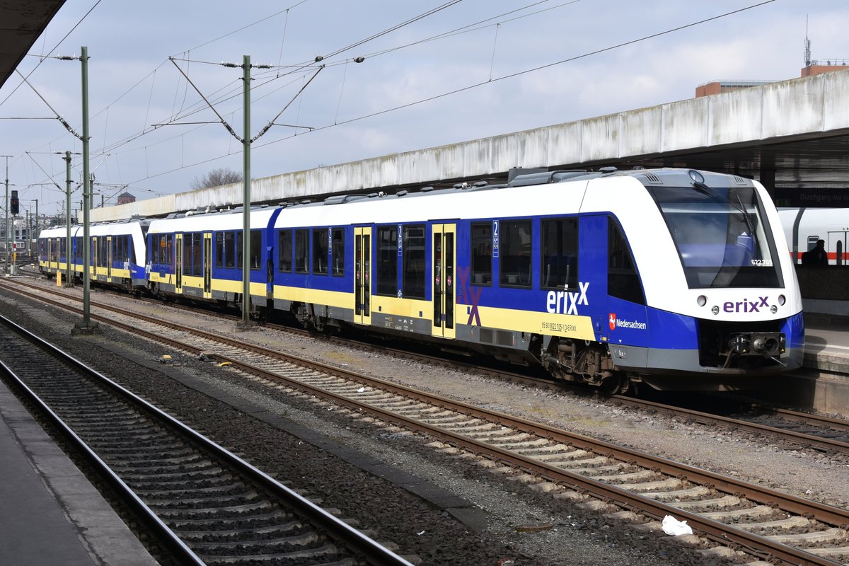 HANNOVER, 19.03.2016, Wagen 101 der Bahngesellschaft enno, die lt. WIKIPEDIA zu 100 % der Metronom Eisenbahngesellschaft gehört, als RE30 nach Wolfsburg Hbf in Hannover Hbf Reinhard Zabel