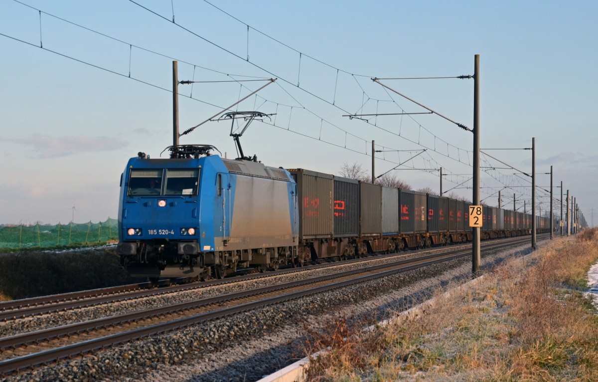 185 520, welche für CFL Cargo Deutschland im Einsatz ist, zog am 19.03.16 einen BlackBoxx-Containerzug durch Zeithain Richtung Dresden. Martin Schneider