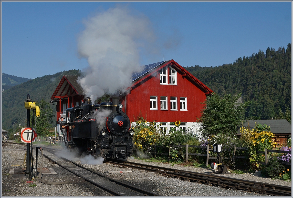 Kurz nach der Abfahrt im Bahnhof vom Schwarzenberg konnte ich den langen Wälderbähnle Dampfzug mit der Uh 102 an der Spitze auf seiner Fahrt nach Bezau festhalten. 10. Sept. 2016 Stefan Wohlfahrt
