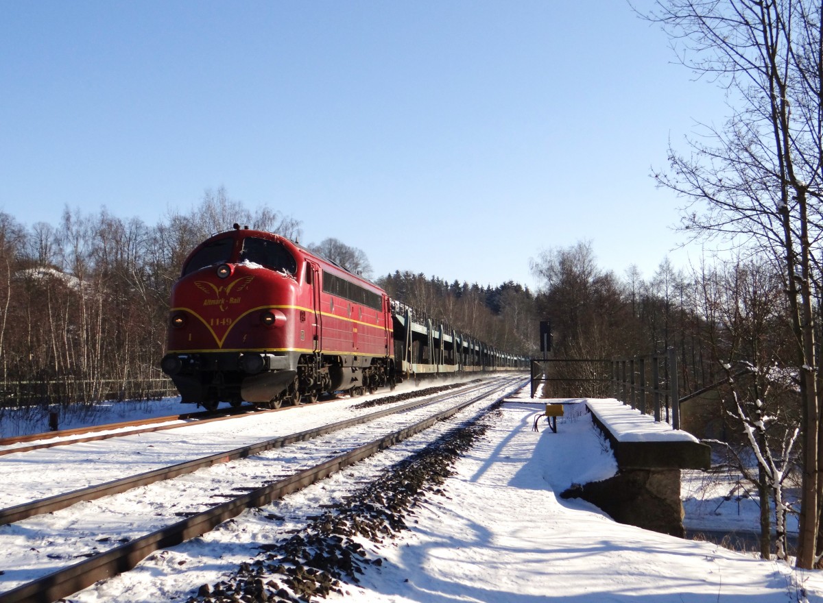 Nohab 1149 (227 008) Altmark-Rail fuhr am 19.01.16 mit einem leeren Autozug von Regensburg nach Mosel. Hier zu sehen bei der Einfahrt in Hof/Saale. Alexander Hertel