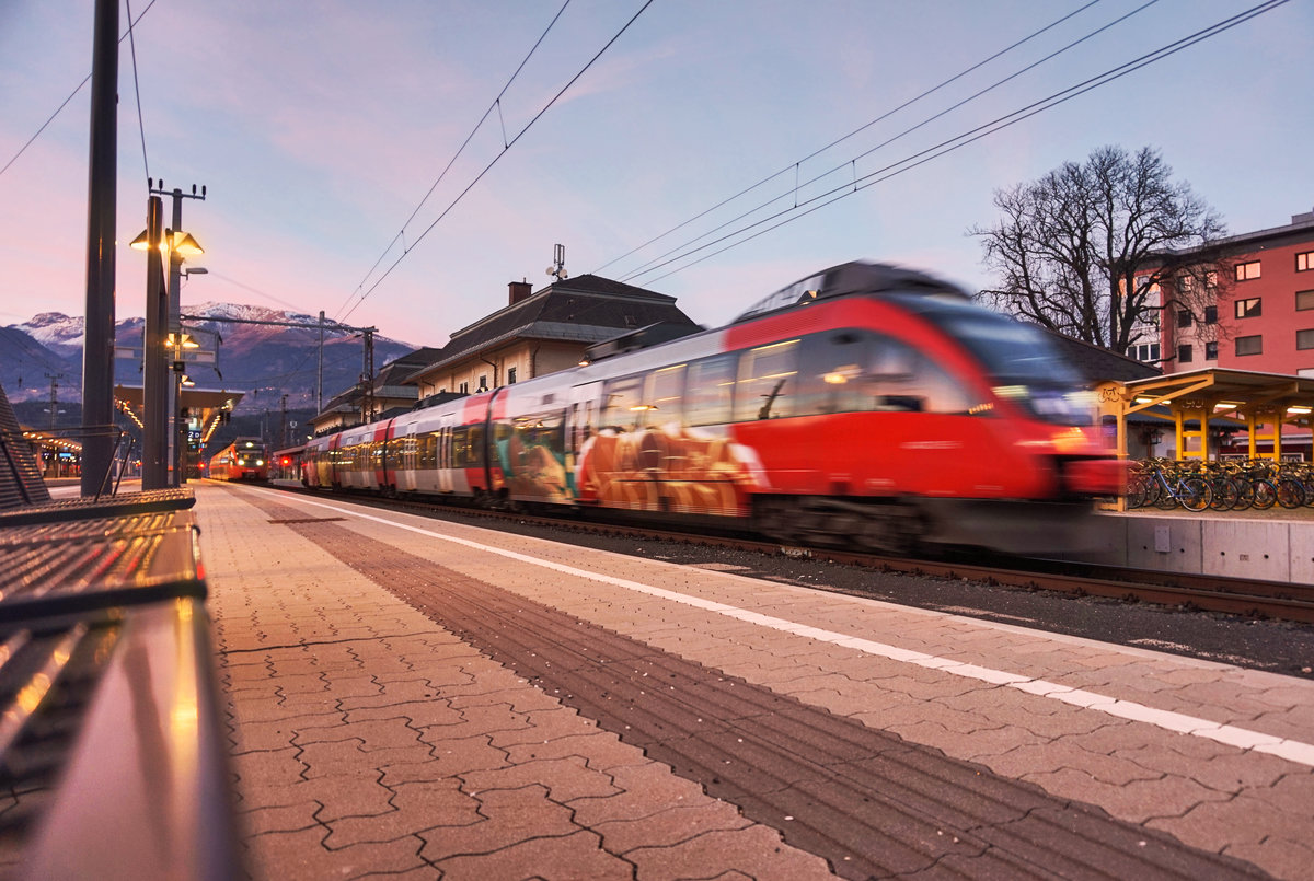 Ausfahrt des SR 17403 (Salzburg Mülln-Altstadt - Spittal-Millstättersee - Lienz) aus dem Bahnhof Greifenburg-Weißensee.