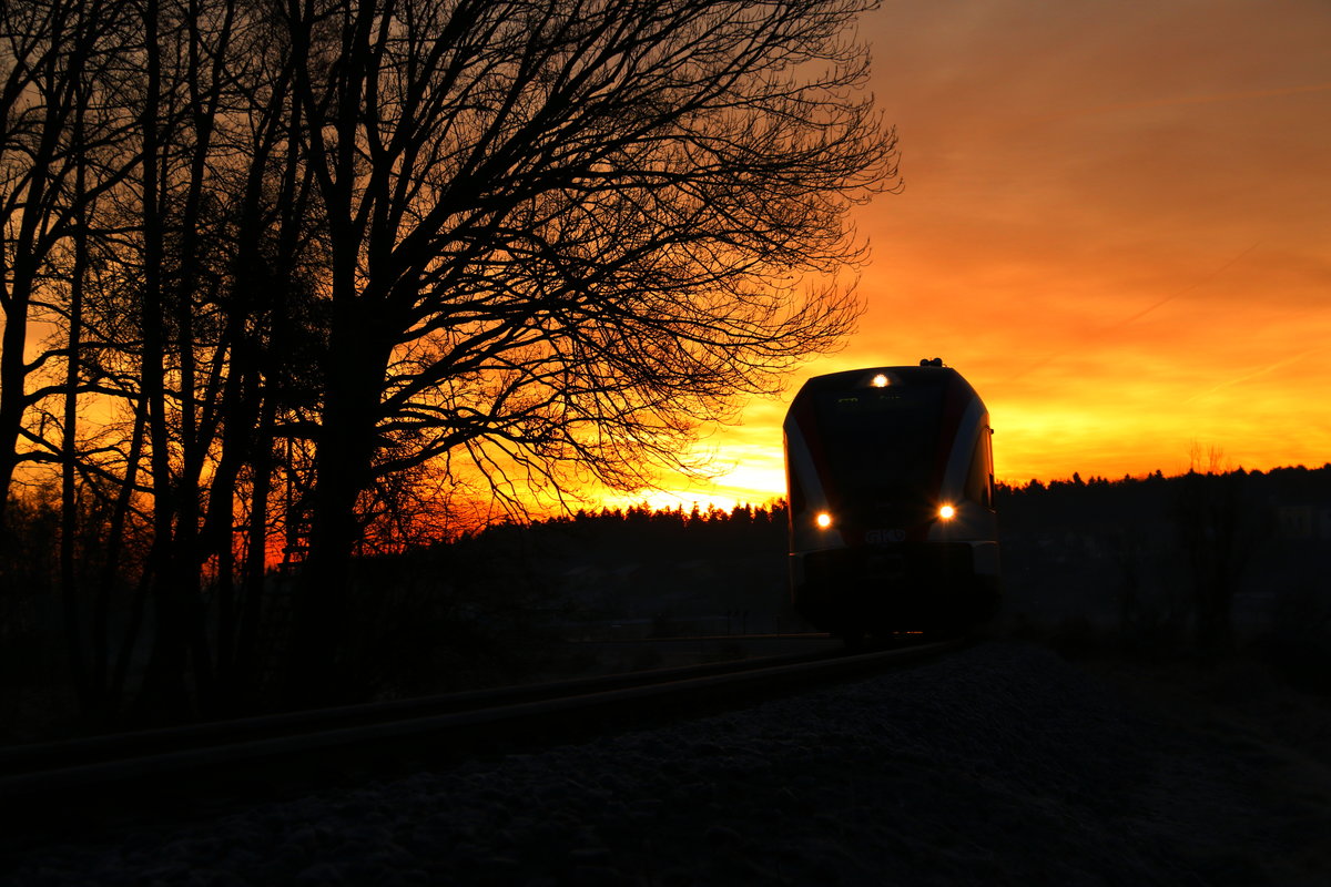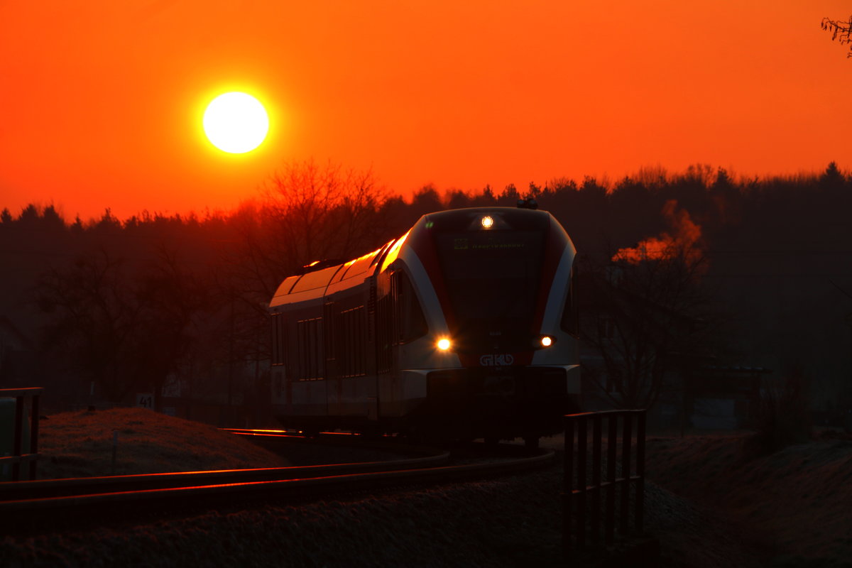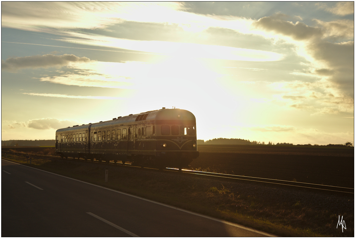 Auf der Rückfahrt von Drosendorf ist diese Gegenlichtaufnahme vom eleganten 5145.11 samt Steuerwagen kurz vor Langau entstanden.(29.10.2016) Markus Pöschl