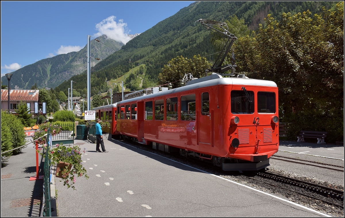 Beiwagen 62 war ursprünglich beim Tramway de Mont Blanc zu Hause. Inzwischen fährt er auf der anderen Seite des Mont Blanc zum Mer de Glace. Juli 2017. Olli