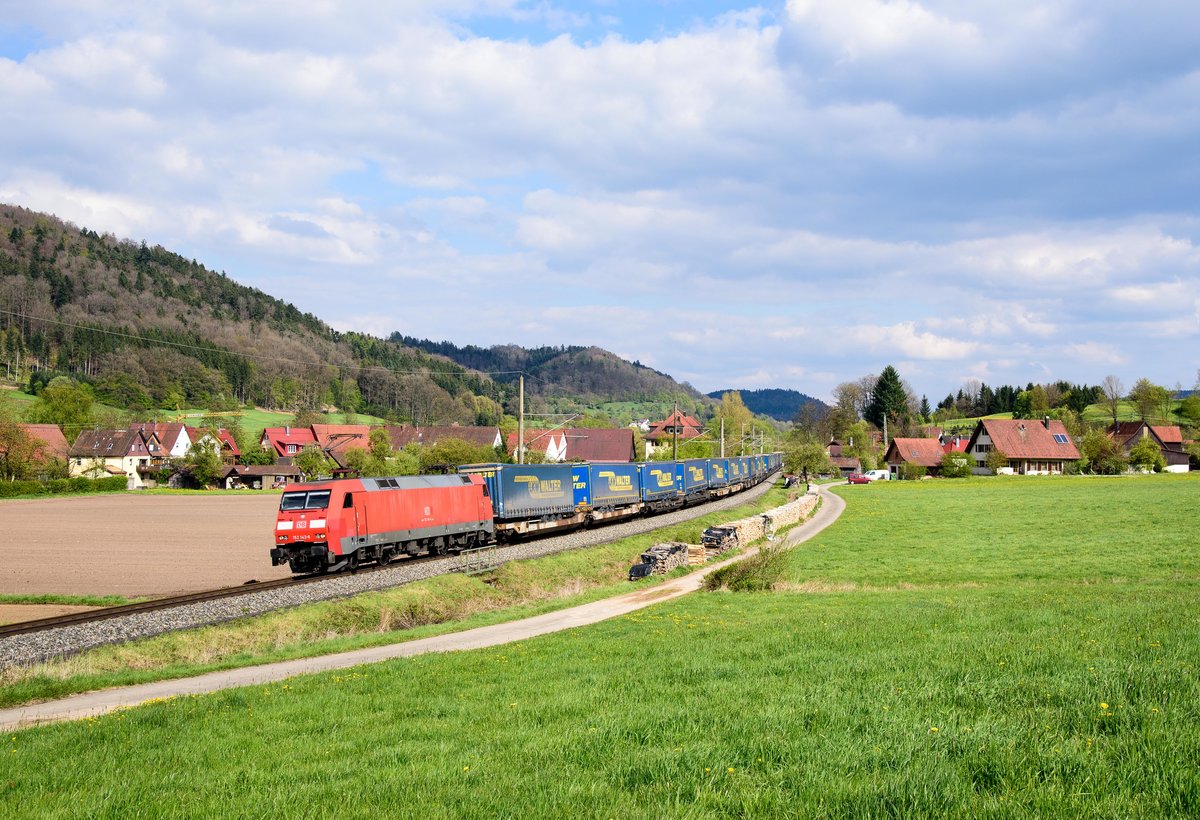 185 025 mit GA 52826 Ingolstadt Nord - Braunschweig Rbf auf der Murrbahn in Richtung Kornwestheim.Aufgenommen bei Schleißweiler am 29.4.2017. Daniel Powalka