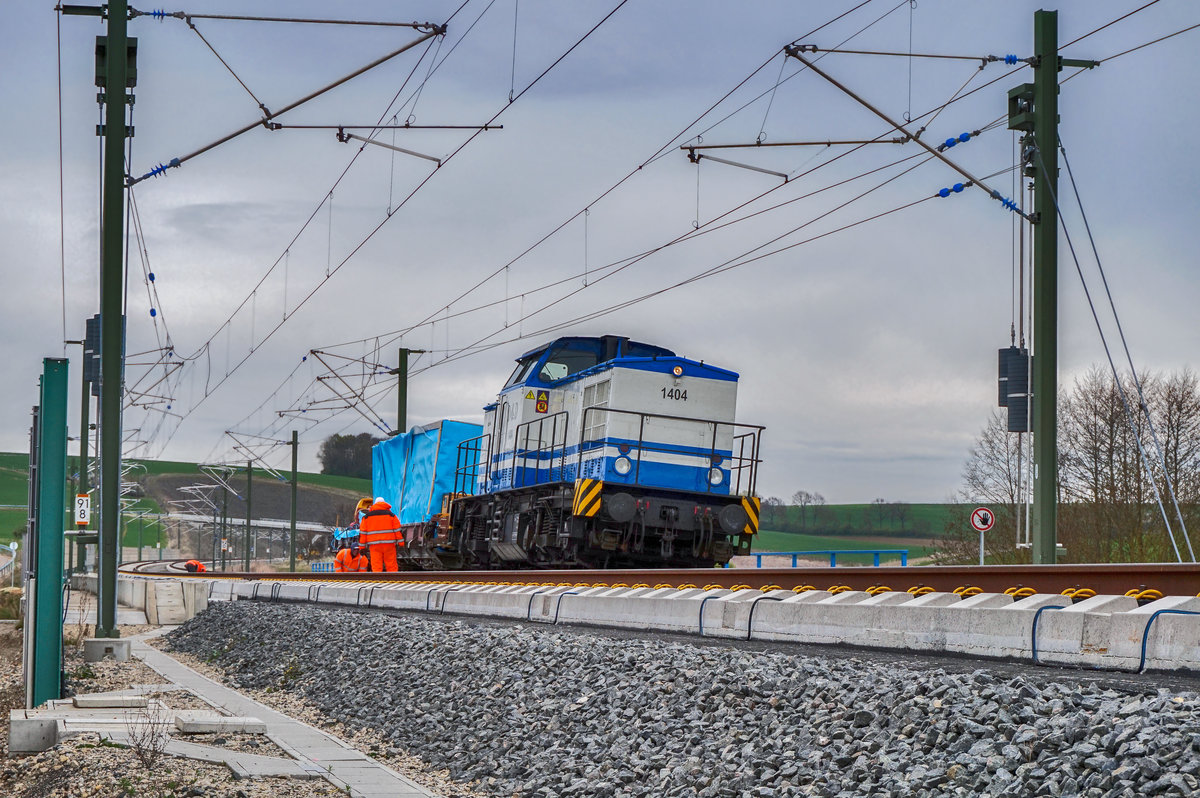 Ein paar kleine Arbeiten werden noch an der Neubaustrecke Ebensfeld–Erfurt erledigt bis sie im Dezember in Betrieb gehen wird.