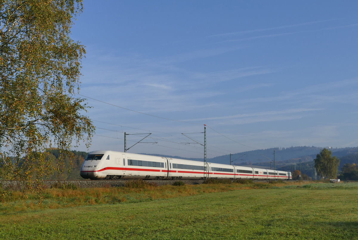 402 008-7 (Tz 208 "Bonn") und 808 043-4 (Tz 243 "Bautzen/Budyŝin") als ICE 537 (Linie 25) von Oldenburg(Oldb) bzw. ICE 587 (Linie 25) von Hamburg-Altona erreichen den Bahnhof Fulda auf Gleis 4. [22.10.2017 | 14:00 Uhr] Clemens Kral