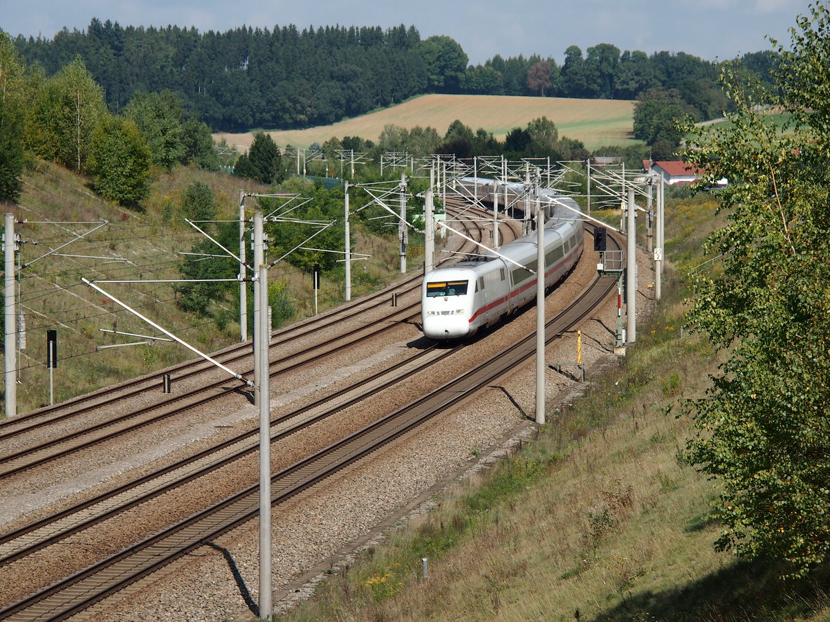Nachschuss auf 402 045-9/401 512-9 "Memmingen" am Nachmittag des 18.10.2017 bei der Ausfahrt als ICE 274 (Basel SBB - Berlin Ostbahnhof) aus Basel Bad Bf in Richtung Weil am Rhein. (Fotostandpunkt von öffentlich zugänglichen Parkplatz) Tobias Schmidt