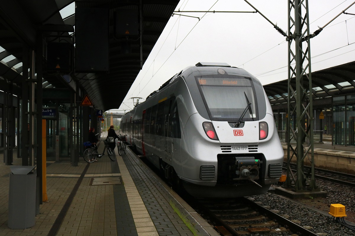 1442 177 (Bombardier Talent 2) von DB Regio Südost als RB 37827 (RB80) nach Bitterfeld steht in ihrem Startbahnhof Lutherstadt Wittenberg Hbf auf Gleis 4. [24.9.2017 | 10:40 Uhr] Clemens Kral