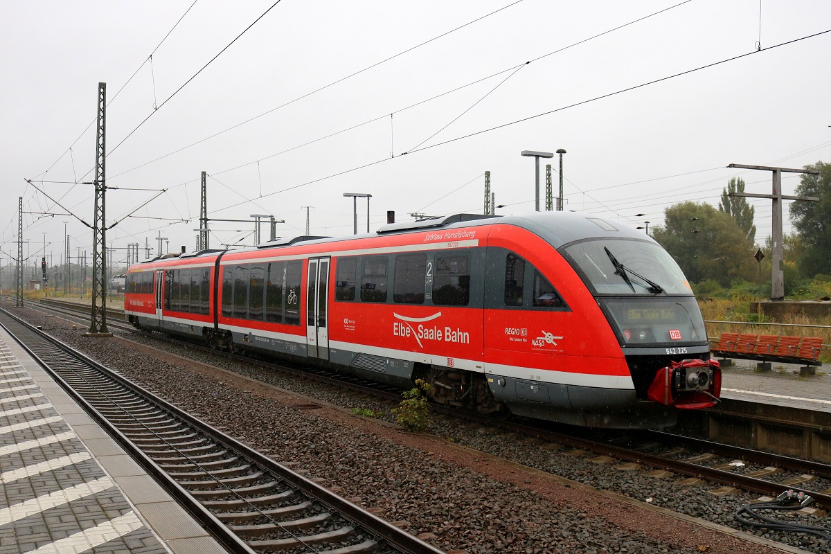642 225 "Schloss Hundisburg" der Elbe-Saale-Bahn (DB Regio Südost) wird als Pendelverkehr zwischen Lutherstadt Wittenberg Hbf und dem ehemaligen Bw Lutherstadt Wittenberg anlässlich der jährlichen Bahnaktionstage bereitgestellt. [24.9.2017 - 10:37 Uhr] Clemens Kral