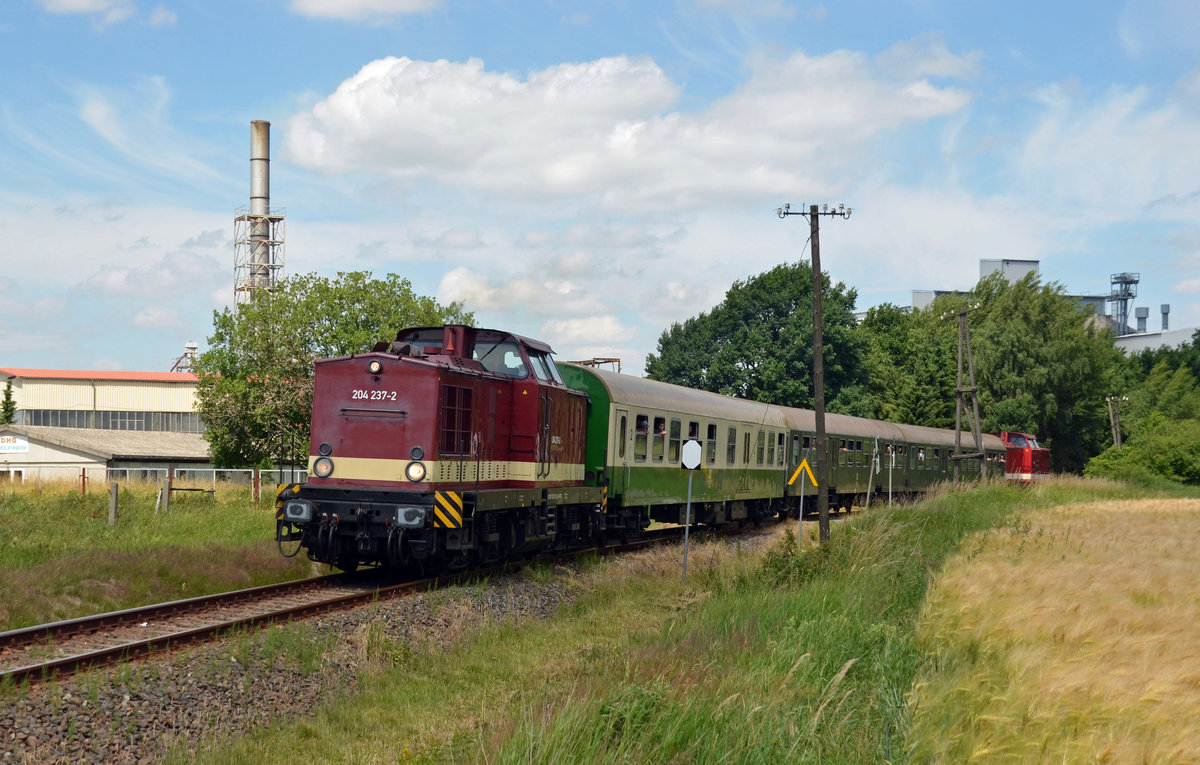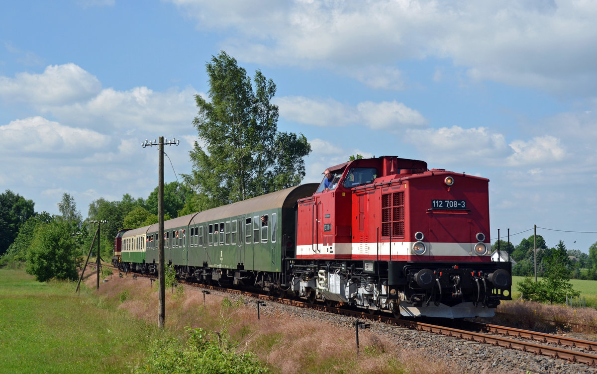 Von Freiberg kommend erreichen 112 708 und 204 237 der MTEG am 24.06.17 ihren Endbahnhof Großvoigtsberg. Für die Weiterfahrt nach Nossen mit dem Ferkeltaxi musste hier umgestiegen werden. Martin Schneider