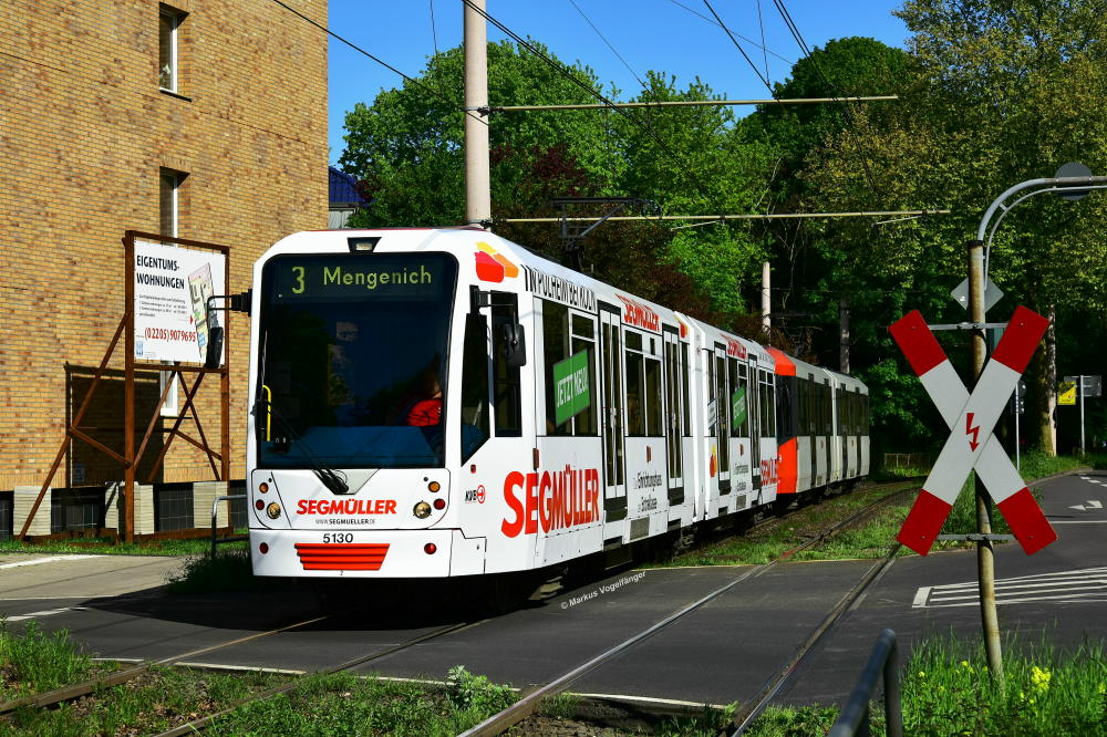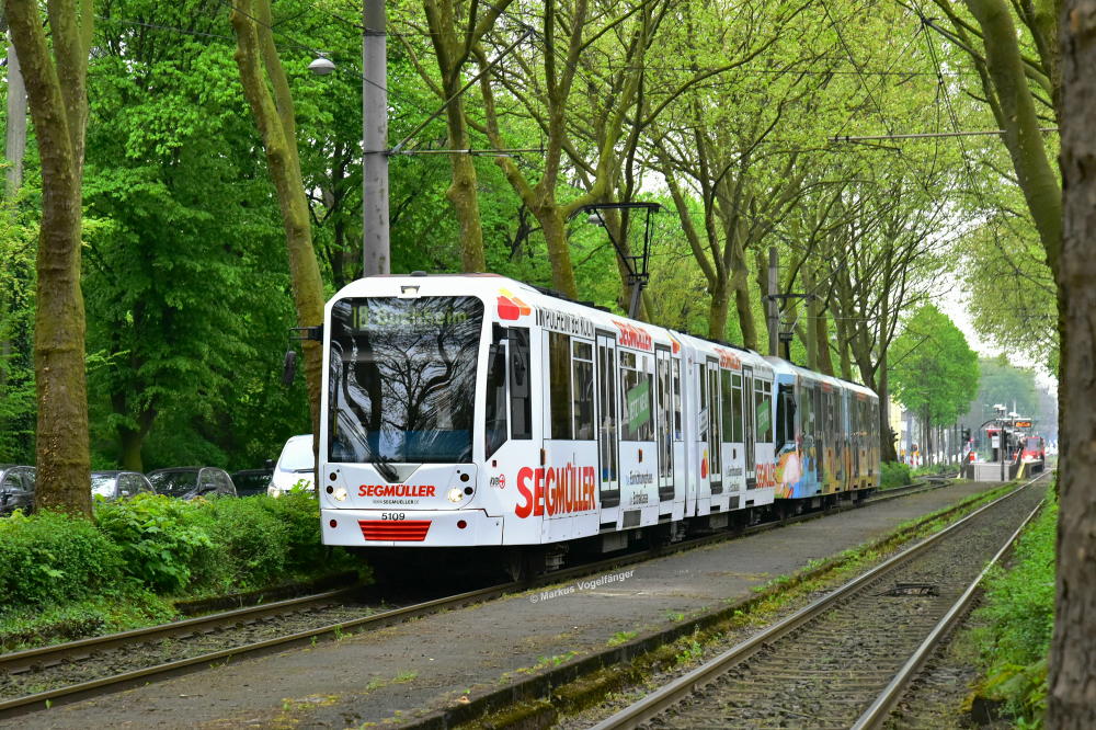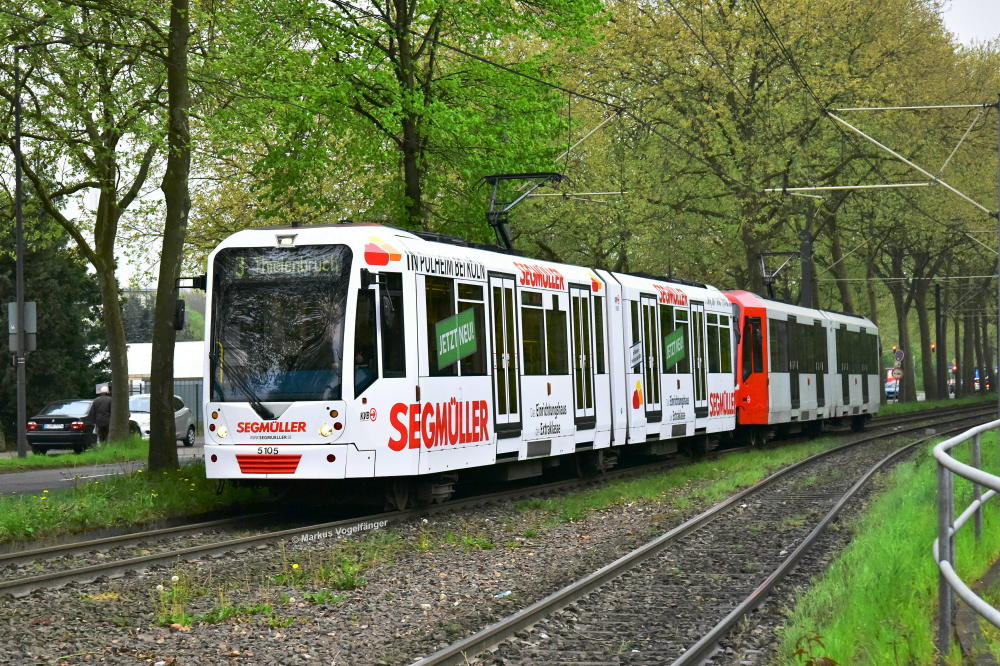 5114 wurde als 46. Fahrzeug eine neue Ganzreklame für das Möbelhaus "Segmüller" angebracht. Hier zu sehen auf der Venloer Straße am 18.05.2017.