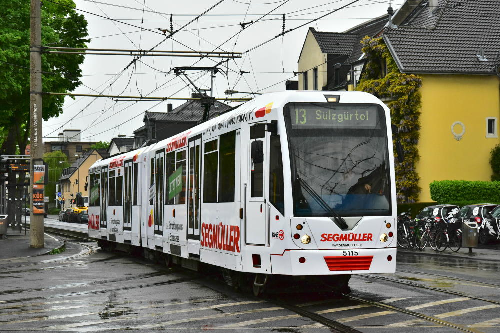5115 wurde als 32. Fahrzeug eine neue Ganzreklame für das Möbelhaus "Segmüller" angebracht. Hier zu sehen auf der Kreuzung Zülpicher Str./Gürtel am 01.05.2017.