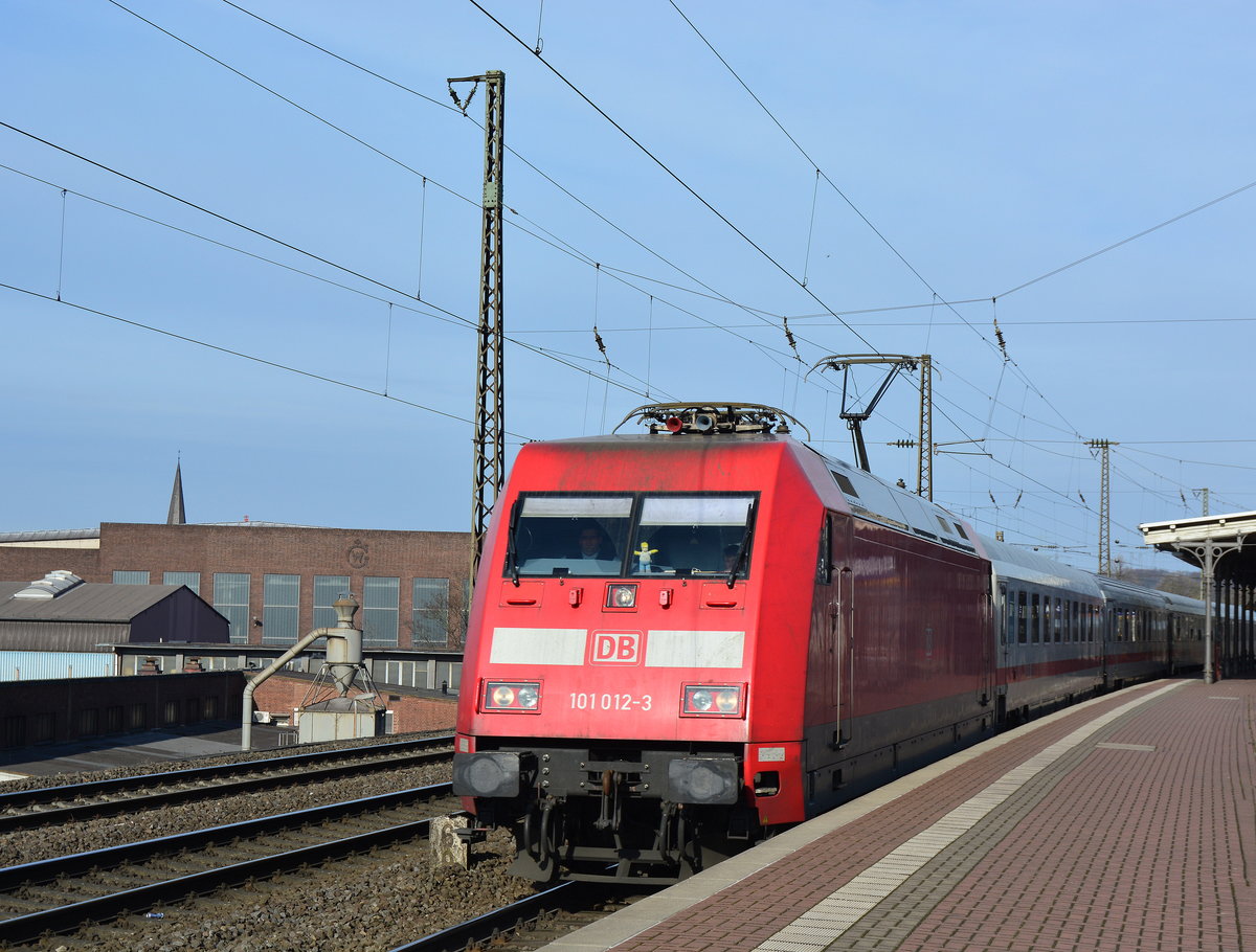 Will Homer seine TV Karriere an den Nagel hängen und etwa Lokführer im Fernverkehr werden? Hier fährt 101 012 mit Homer und einem IC am Haken durch Witten in Richtung Hagen.
