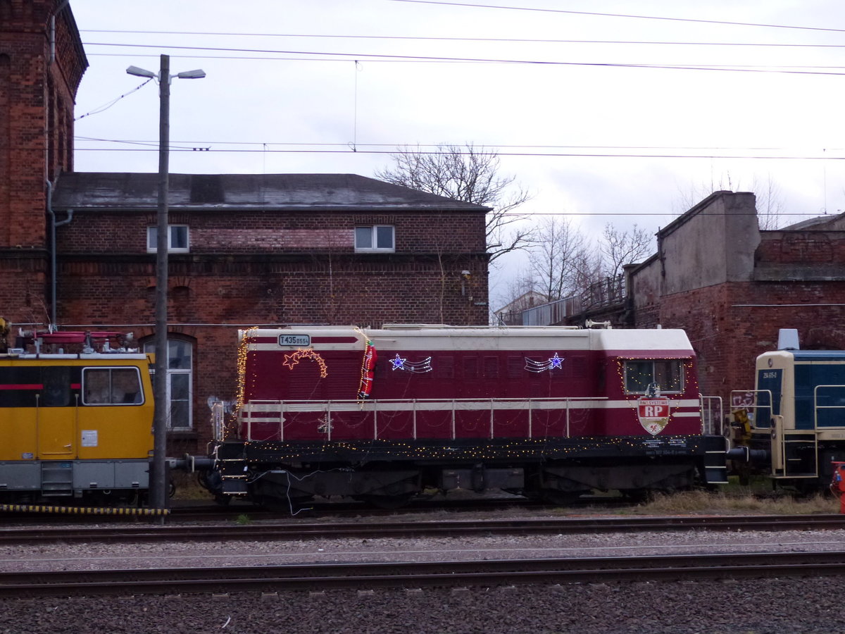 Bei Railsystems RP in Gotha ist zur Zeit die T 435.0554 (98 80 3107 554-8 D-RPRS) weihnachtlich geschmückt und steht vor der dortigen Werkstatt; 07.12.2017 Frank Thomas