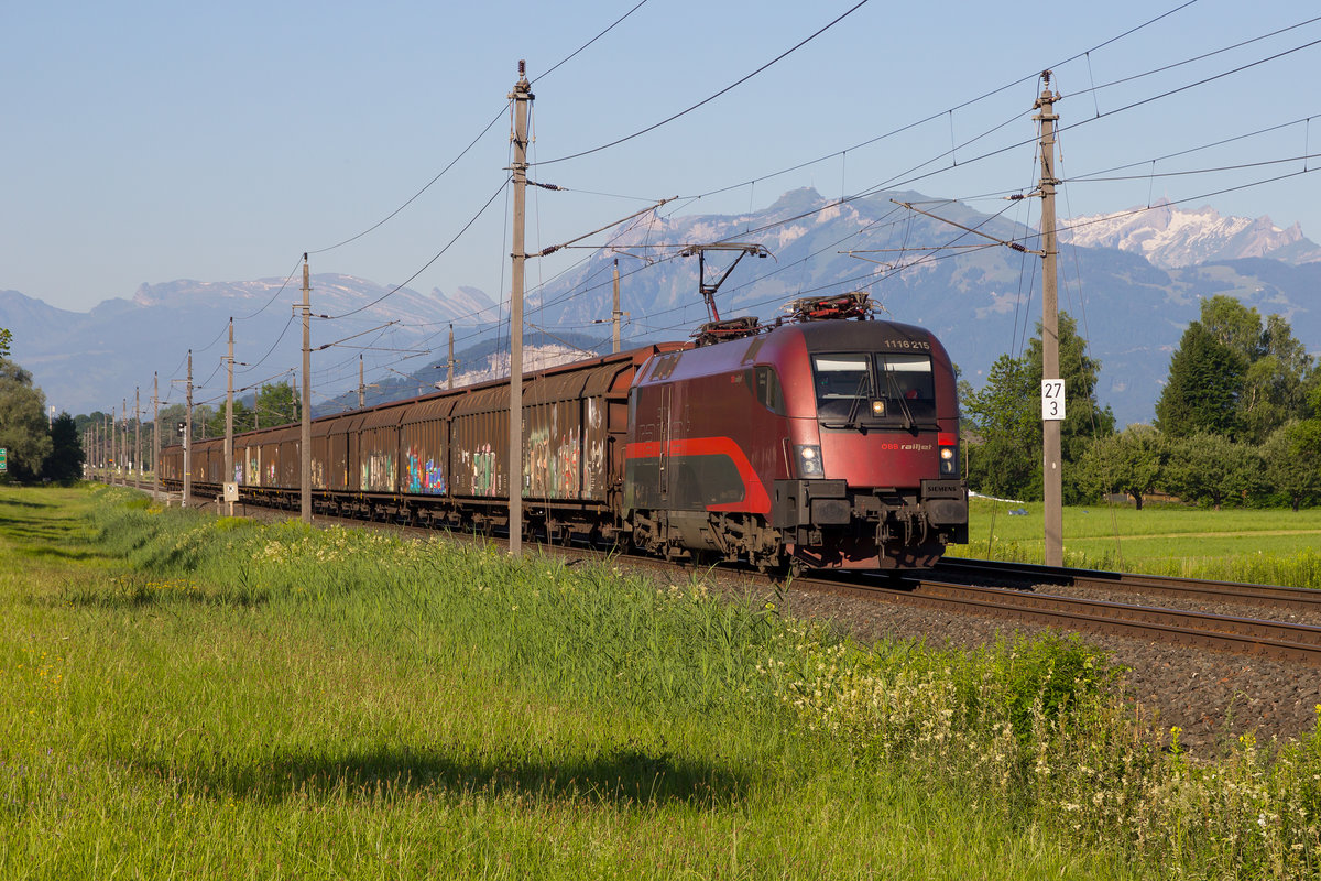 1116 125-6 zieht ihren EuroNight durch Vorarlberg auf der Umleiterstrecke nach Zürich . Zwischen Hohenems und Dornbirn. Fahrtrichtung Dornbirn. 26.6.2017 Marvin Schenk
