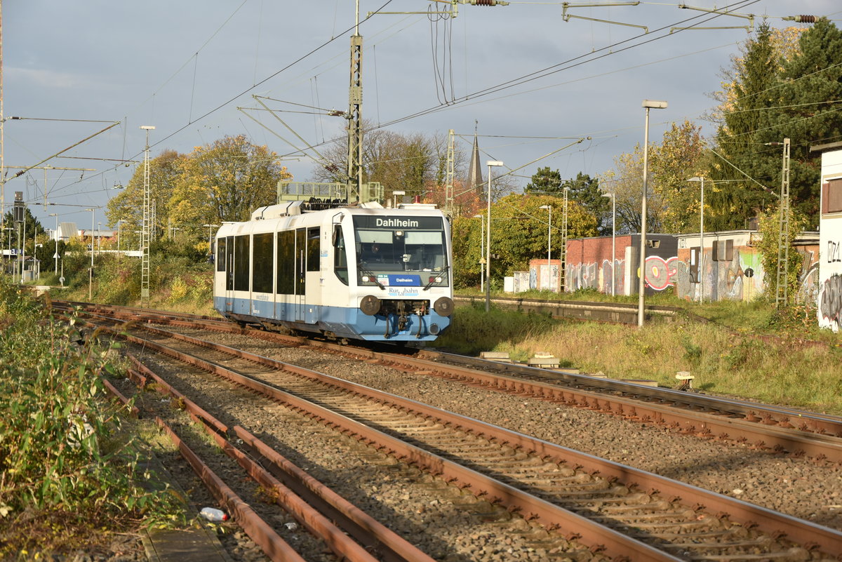 Als RB 34 kommt der RTB-Triebwagen VT 6.005 gen Dalheim fahrend dem Fotografen vor die Linse....Gleisbauarbeiten werfen ihre Schatten voraus wie man am linken unteren Bildrand unschwer erkennen kann. Rheydt Hbf den 26.9.2017 Andreas Strobel