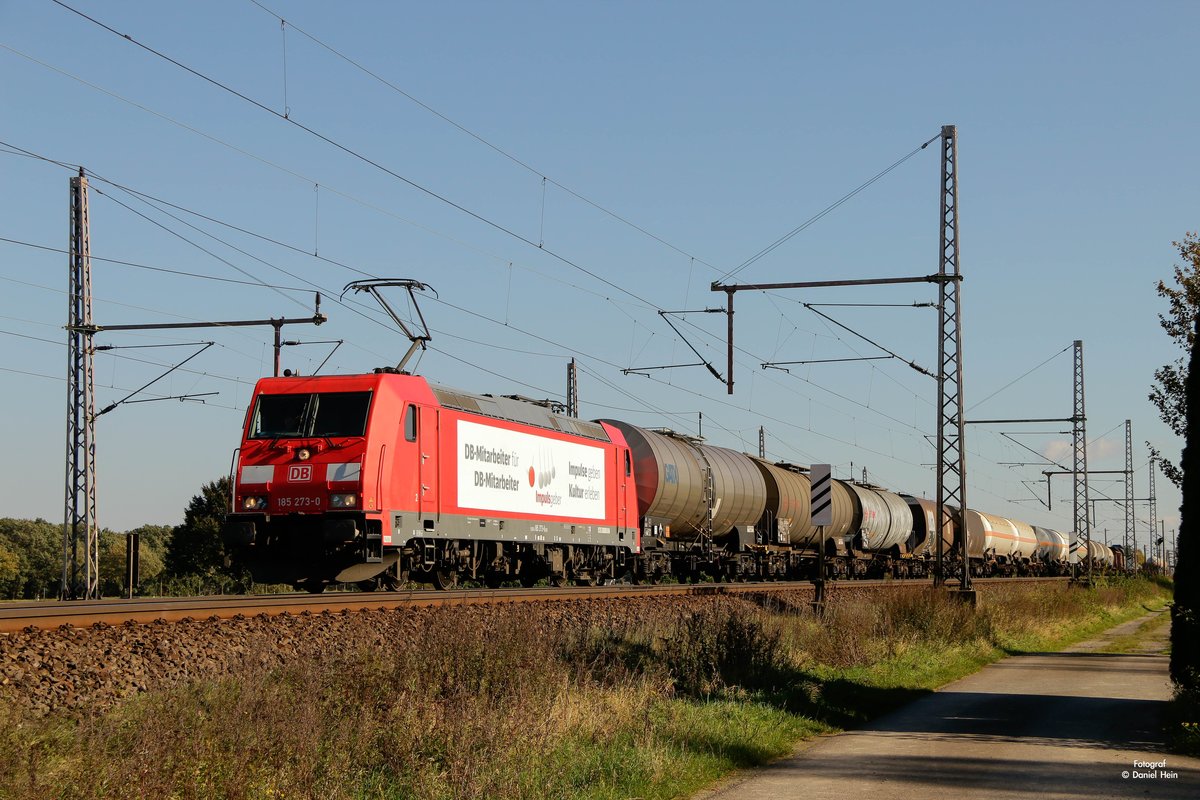 Mit einem gemischten Güterzug (Mannehim Rbf - Chiasso Smistamento) fuhr am 31.10.2017 die 185 090-8 "Bombadier Werk Kassel" nördlich von Müllheim (Baden) in Richtung Schweizer Grenze. Tobias Schmidt