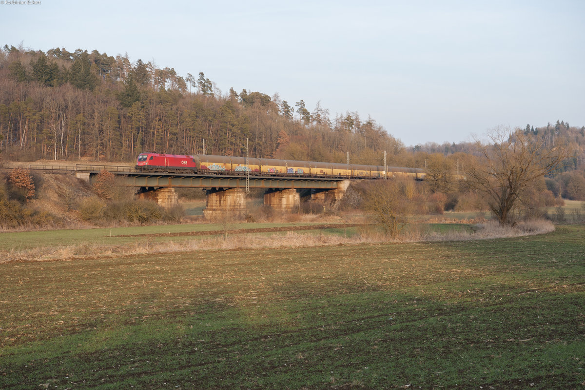 Am späten Nachmittag des 28. September 2018 zog Schleierbewölkung auf und beendete den Fotoausflug ins Altmühltal dann schneller als gedacht. Als letztes Bild des Tages konnte ich noch diese nette Zugbegegnung bei Hagenacker aufnehmen. Die ÖBB 1116.115 brachte einen Ganzzug bestehend aus Waggons der Gattung Tanoos 896 für den Kalitransport gen Treuchtlingen, während 445 080 als RB 59099 nach München HBF strebte. Christoph Schneider