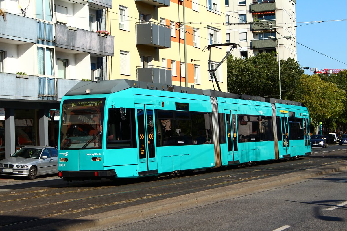Am Abend des 11.2.2018 steht Wagen 039 der Verkehrsgesellschaft Frankfurt am Main als Linie 17 zum Rebstockbad an der Haltestelle Oberschweinstiege. Henri Kliemt