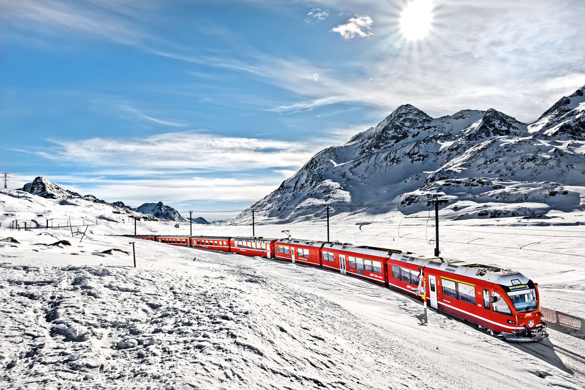 An einem schönen Wintertag,es war der 28.Januar 2018,fährt der Allegra Triebzug ABe 8/12 3507 als R1644 nach Hospizia Bernina Richtung Pontresina. Matti Morelli