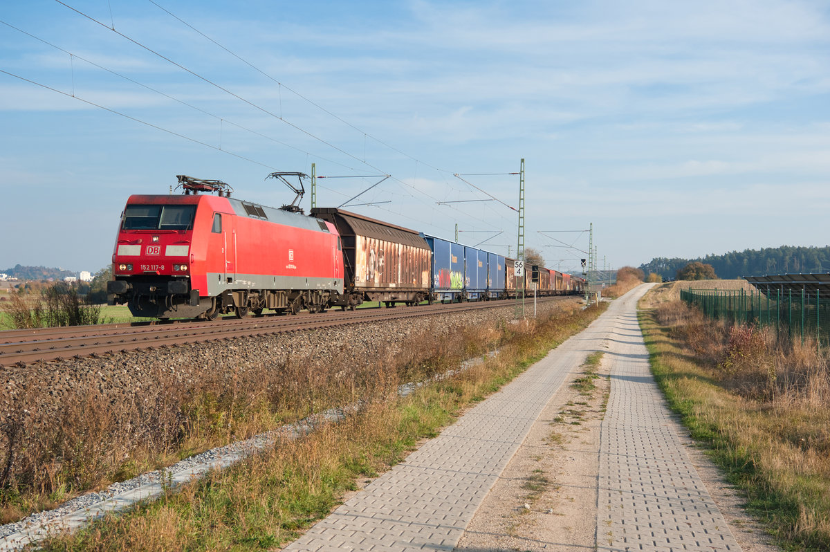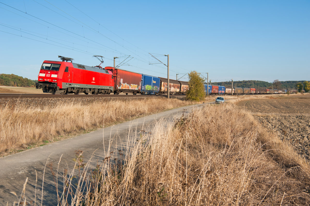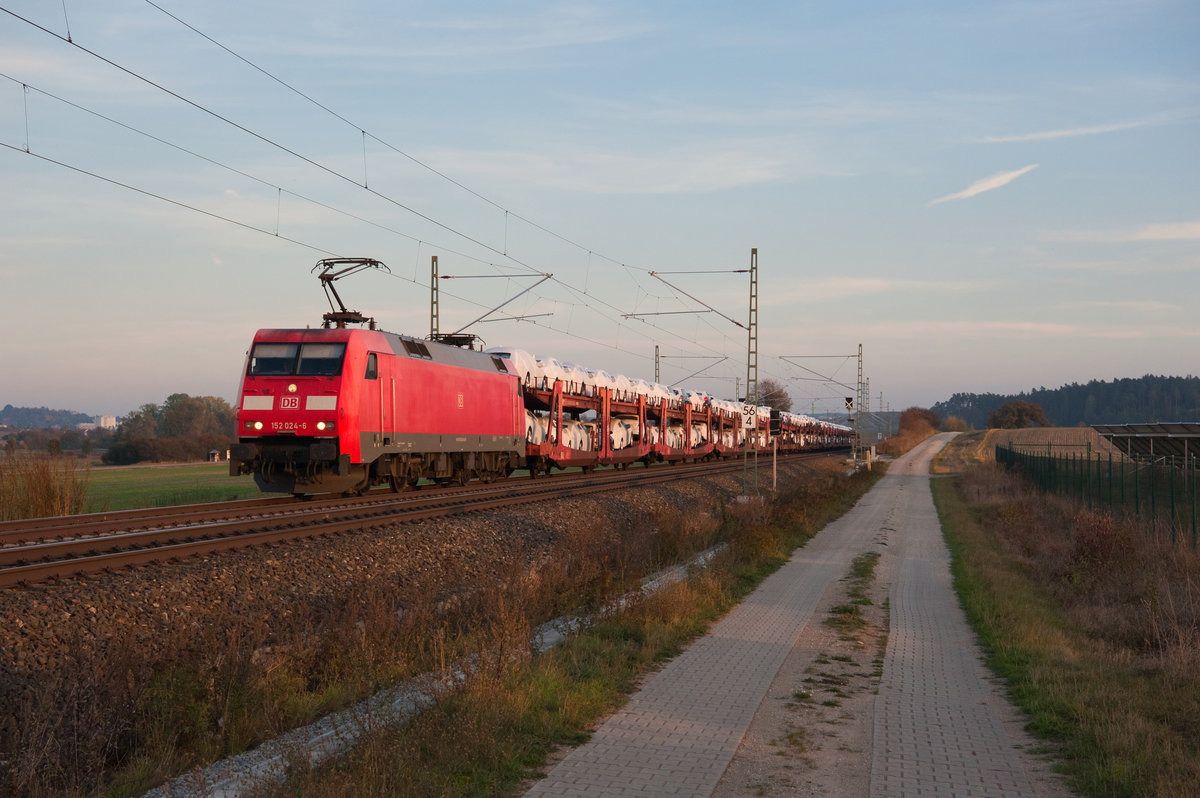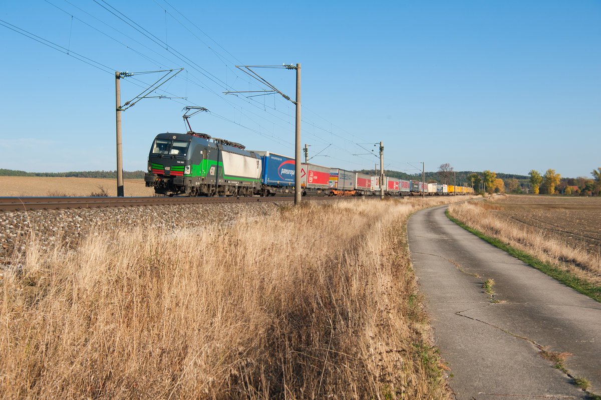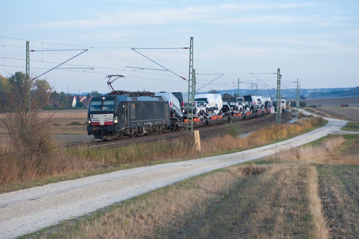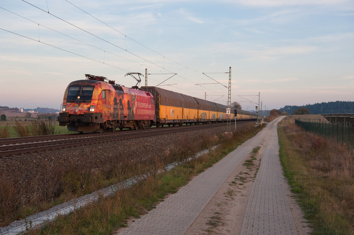 1016 048 "Niederösterreichischer Landesfeuerwehrverband" mit einem ARS Altmann Autotransportzug bei Lehrberg Richtung Würzburg, 09.10.2018 Korbinian Eckert
