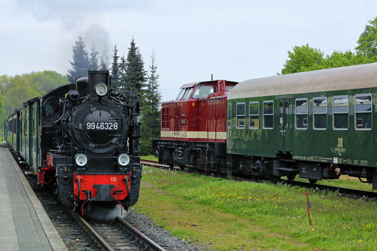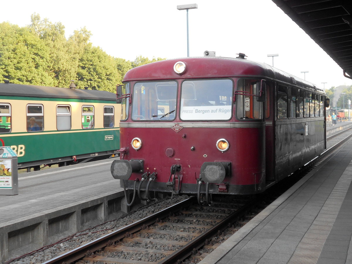 Bahnhof Putbus am 13.Juni 2018,Während der NESA 796 625 nach Bergen/Rügen ausfuhr,erhielt auch der Rasende Roland Ausfahrt nach Lauterbach Mole. Mirko Schmidt