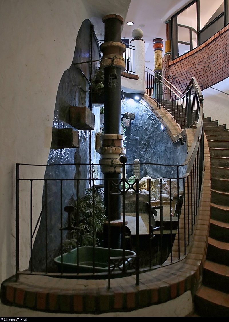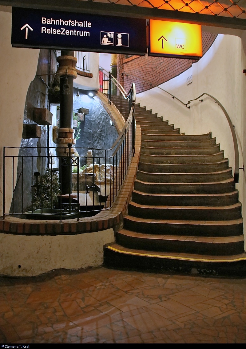 Auch die Bahnsteigoberfläche sowie die Treppenaufgänge von der Fußgängerunterführung wurden nach den Ideen und dem Konzept des inzwischen verstorbenen Künstlers Friedensreich Hundertwasser im Jahr 2000 umgebaut.
