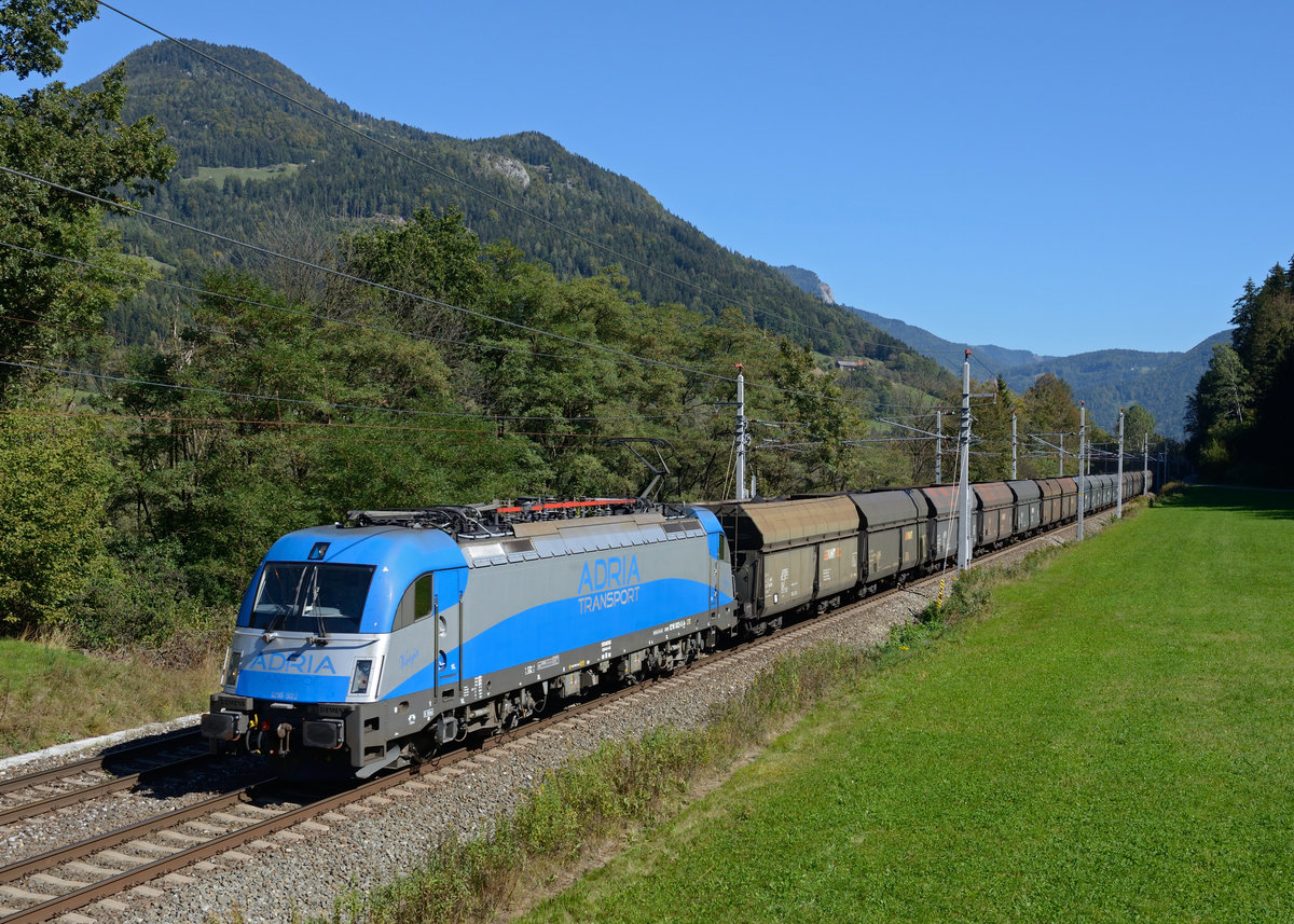 Die Adria 1216 922 brachte am 28. September frische Kohle aus Tschechien mit dem LTE-Kohlestaubzug 40599 nach Werndorf, fotografiert in Peugen. Kriwetz Lukas