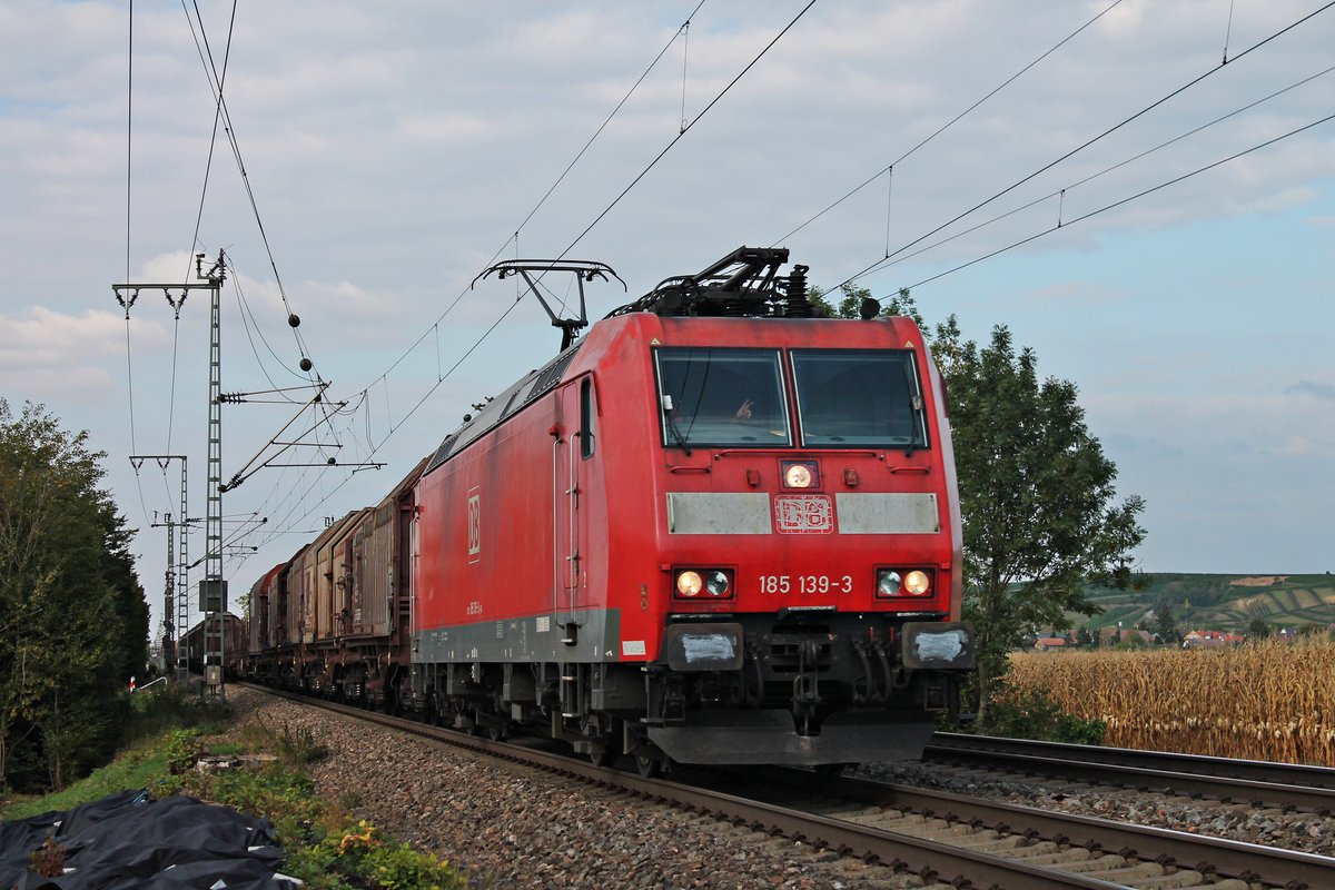 Am Nachmittag des 04.09.2018 fuhr 185 139-3 mit einem gemischten Güterzug (Mannheim Rbf - Chiasso Smistamento) bei Hügelheim durchs Markgräflerland in Richtung Schweizer Grenze. Tobias Schmidt