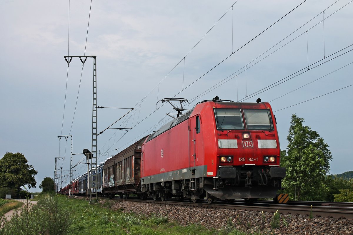 Mit dem gemischten Güterzug (Mannheim Rbf - Basel Bad Rbf) fuhr am 08.06.2018 die 185 164-1 nördlich von Müllheim (Baden) über die Rheintalbahn in Richtung des nur noch wenige Kilometer entfernte Zielbahnhof. Tobias Schmidt