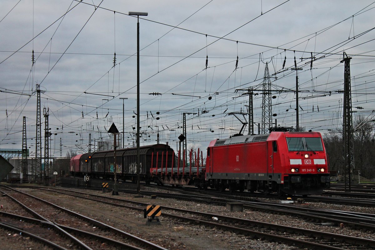 Mit einem gemischten Güterzug (Mannheim Rbf - Chiasso Smistamento) fuhr am 30.01.2018 die 185 240-9 durch den Badischen Bahnhof von Basel in Richtung Rangierbahnhof Muttenz, wo sie ihren Zug an einen Schweiz-taugliche 185er abgeben wird. Tobias Schmidt