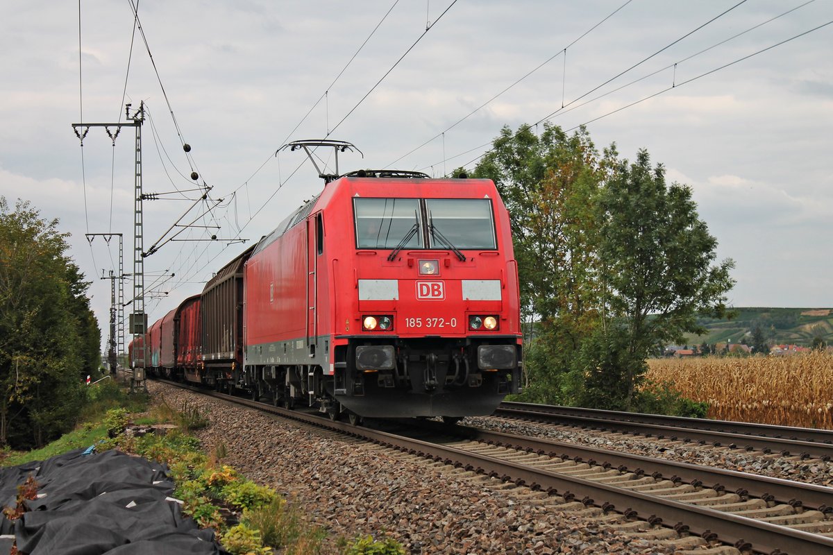 Mit einem sehr kurzen gemischten Güterzug aus Mannheim Rbf fuhr am Nachmittag des 04.09.2018 die 185 372-0 nördlich von Müllheim (Baden) durchs Markgräflerland in Richtung Basel. Tobias Schmidt